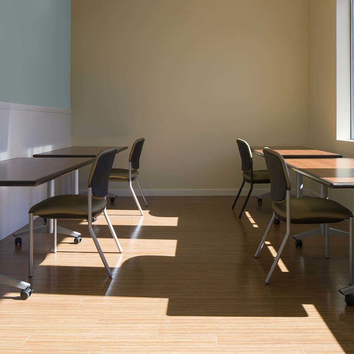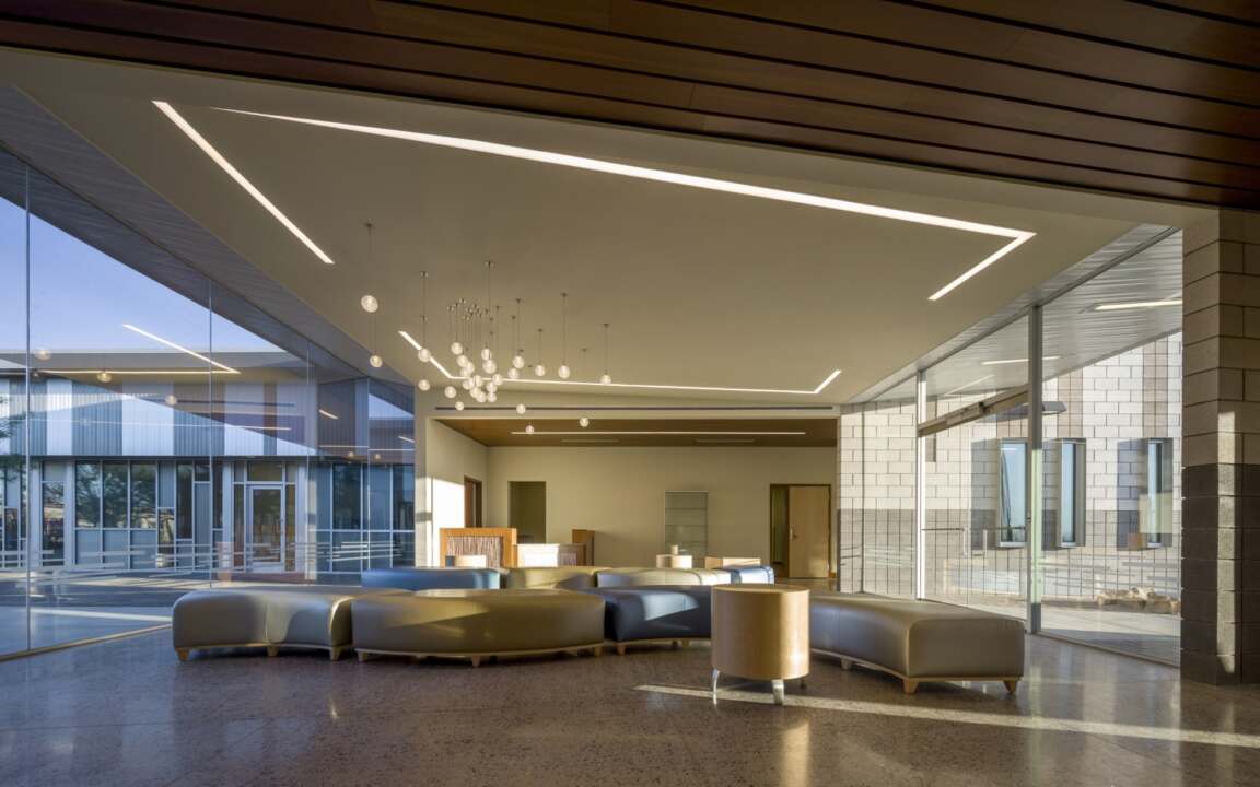 Each of the residential buildings is thoughtfully designed to include the comforts and functions of a home. Youth have access to kitchens, living rooms, study areas, game rooms, and individual bedrooms that promote a sense of normalcy and stability. A larger multi-purpose building serves as a central hub, featuring a commercial kitchen and laundry, an exercise space, a meditation room, a large activity area, and offices to support day-to-day operations and staff needs.