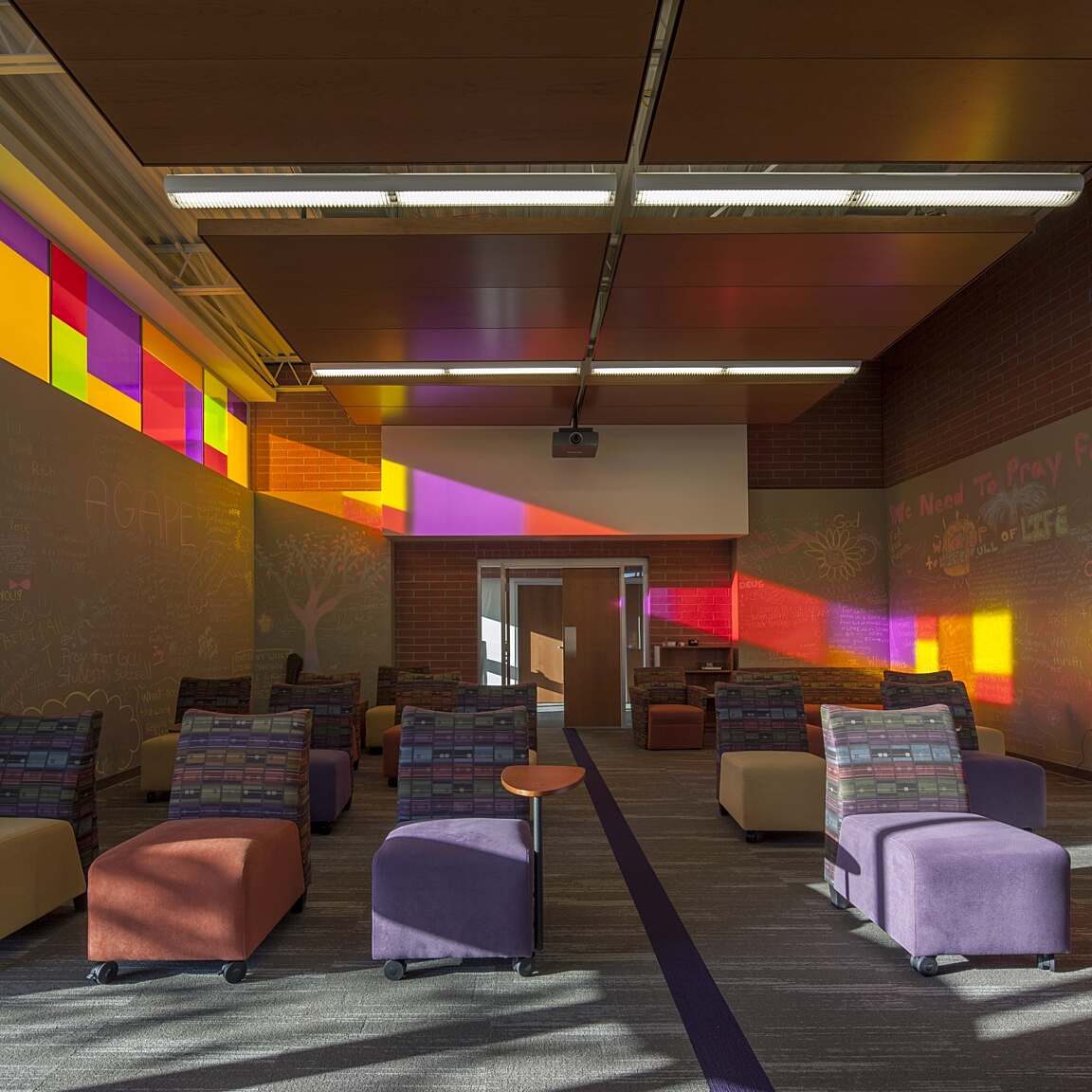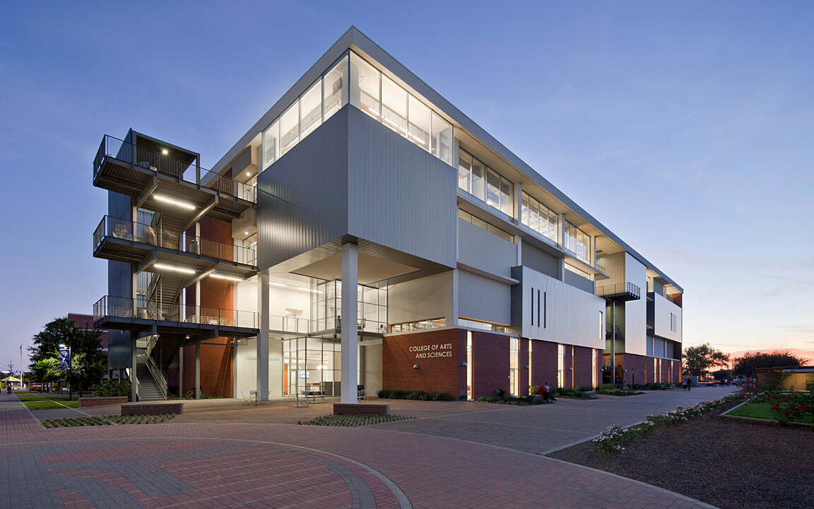 Grand Canyon University's College of Arts and Sciences is designed with a focus on student-centered learning and flexibility. The classrooms are envisioned as dynamic spaces that encourage exploration and discovery. Professors and students can easily reconfigure the room to suit the immediate goals of learning, whether that involves group work, technology integration, or hands-on activities. This adaptable design fosters an environment conducive to collaboration, creativity, and active engagement in the learning process.