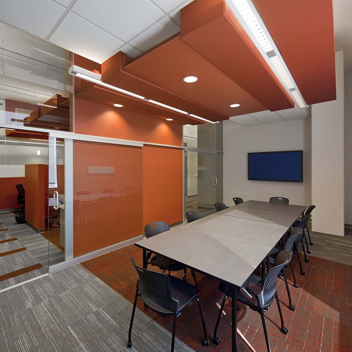 To further enhance the campus experience, the design incorporates features that promote sustainability and collaboration. Maximized daylighting helps reduce energy consumption, while open ceiling spaces allow for easy access to systems. The flexible stations within the building encourage group collaboration, and alcoves and breakout areas provide informal spaces for spontaneous learning and team-building. The inclusion of large group spaces, meeting rooms, and technology labs also ensures that students and faculty have a variety of spaces to meet their diverse needs, all while fostering a sense of community and engagement with the public and prospective students.