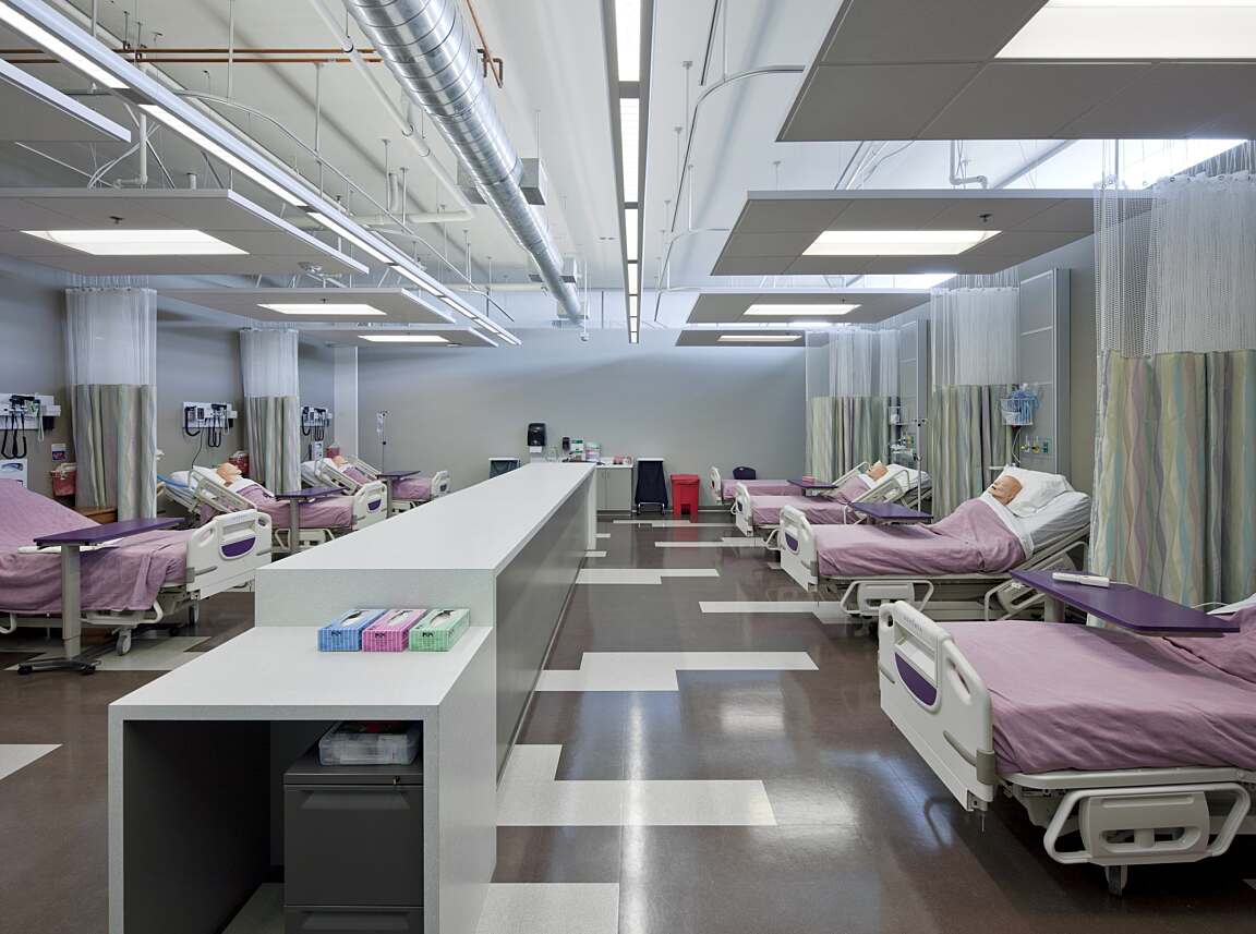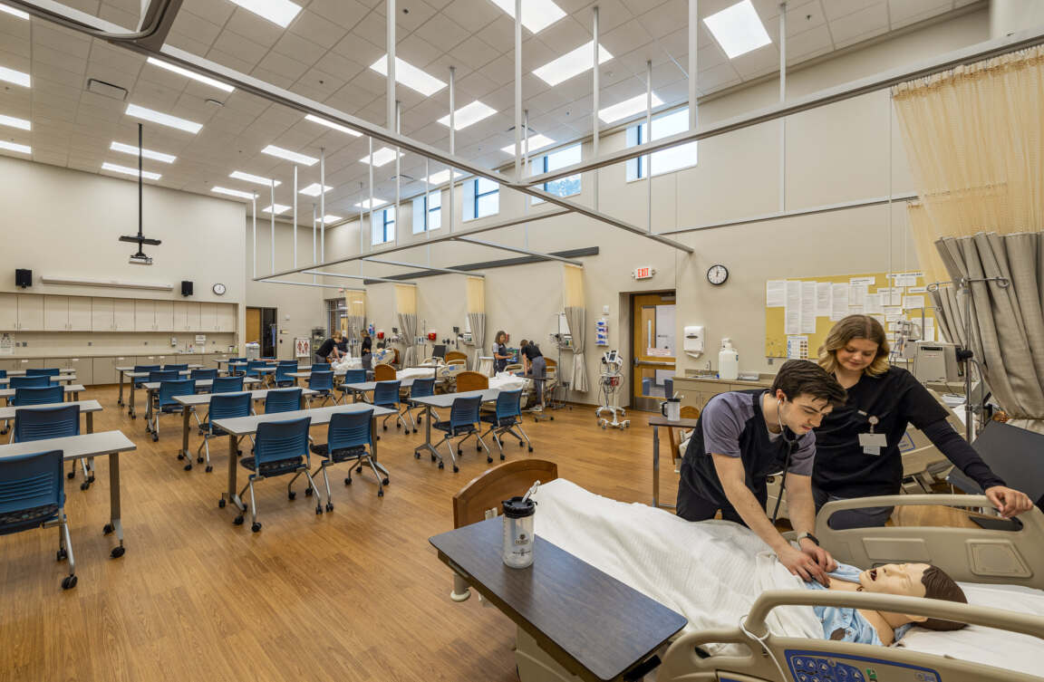 Designed to replicate real-world healthcare environments, nursing simulation classrooms provide students with hands-on experience in a controlled, immersive setting. Equipped with advanced simulation technology and a control room for instructors, these labs offer a dynamic learning experience that prepares students for the challenges of clinical practice.