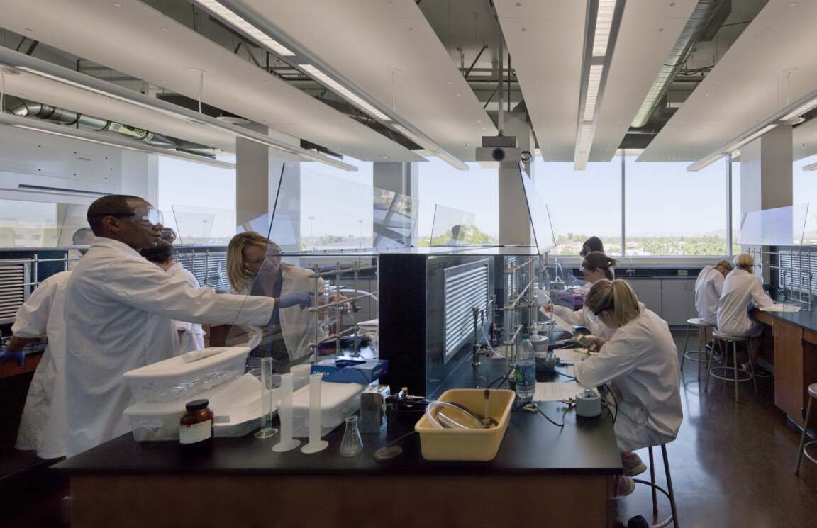 The building's structure and materials were carefully selected to support the needs of 21st-century education. Flexible learning environments are at the heart of the design, featuring spaces that can easily adapt to various activities. Specialized labs, such as those for nursing skills education, organic chemistry, forensic chemistry, and DNA research, push the boundaries of science education. These state-of-the-art facilities provide hands-on learning opportunities in a modern, interactive setting, ensuring GCU remains at the forefront of academic excellence.