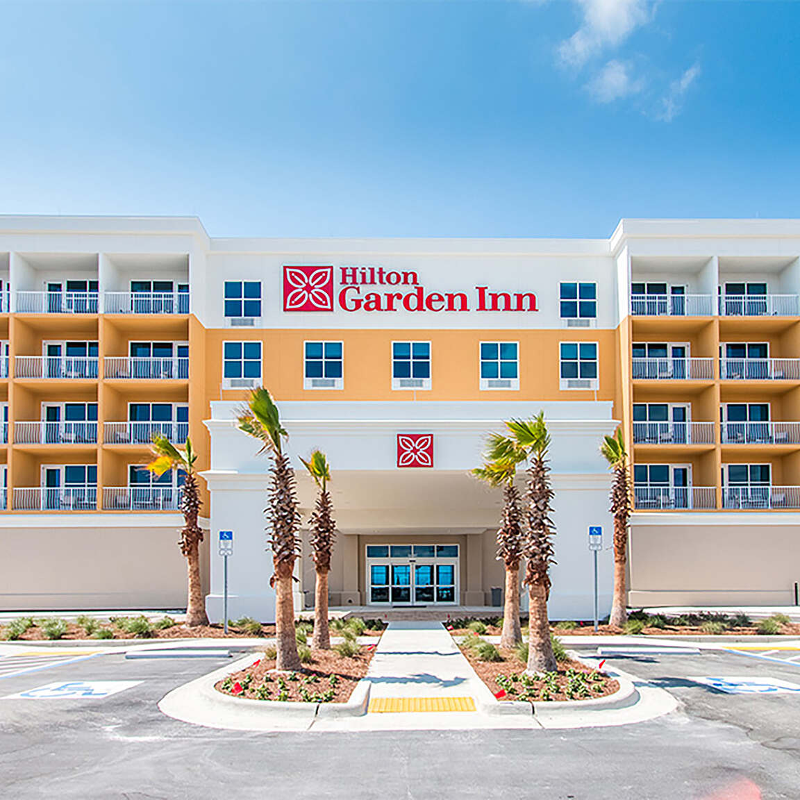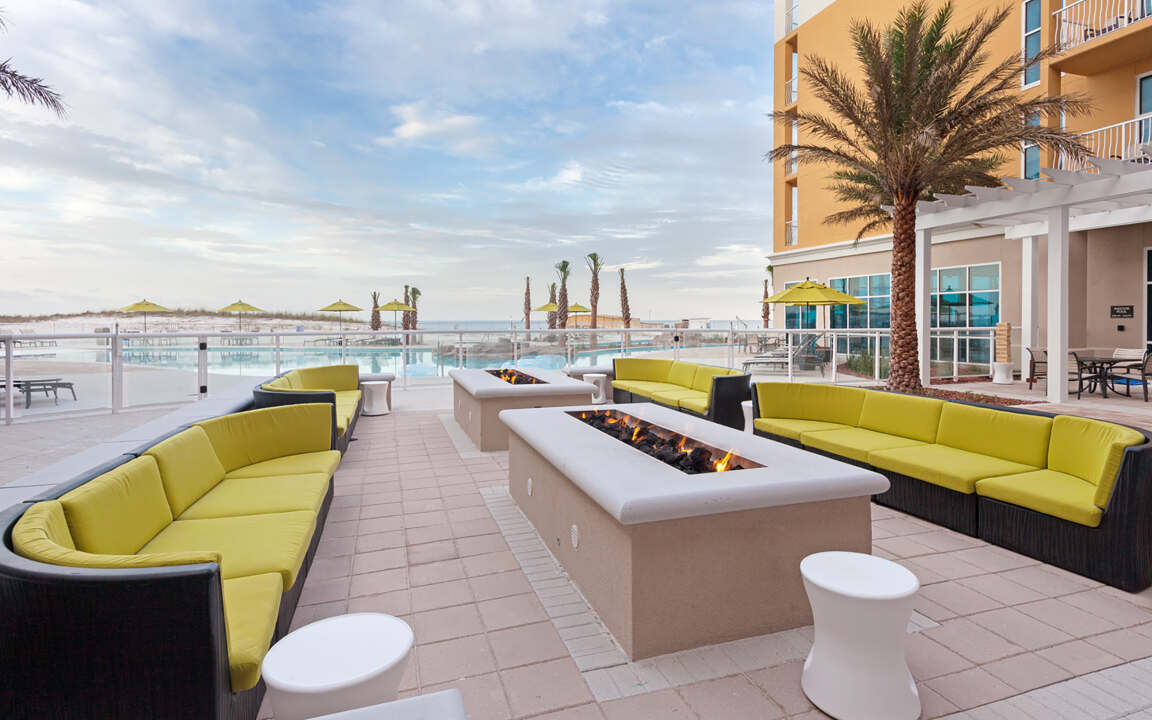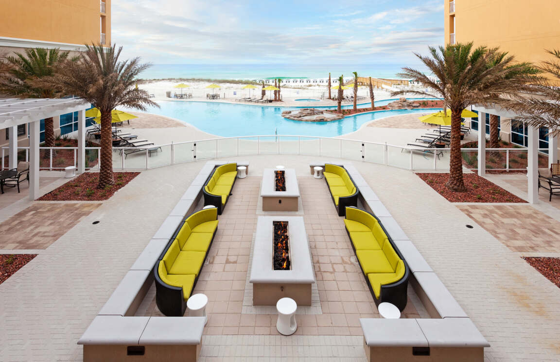The Hilton Garden Inn, a sister resort to the esteemed Holiday Inn, stands as a luxurious five-story property, providing an ideal retreat for guests of all ages. Featuring a unique "U"-shaped hybrid courtyard that opens up to scenic views of the gulf, this resort offers a secluded space shielded from the wind, perfect for unwinding, dining, and enjoying the warmth of cozy firepits. The well-appointed guest rooms boast top-notch amenities, with select rooms offering balcony views of the gulf and bunk beds for the younger guests.