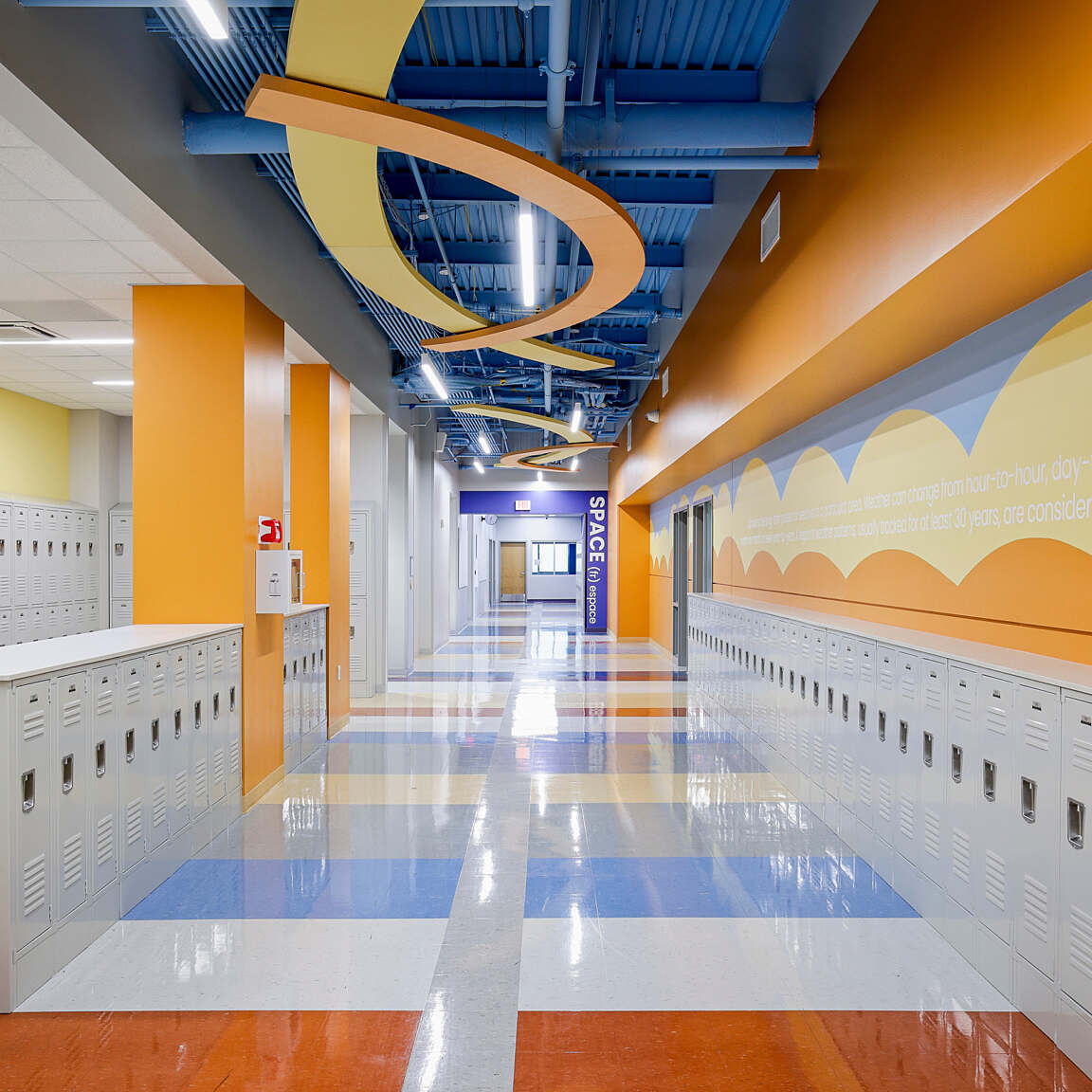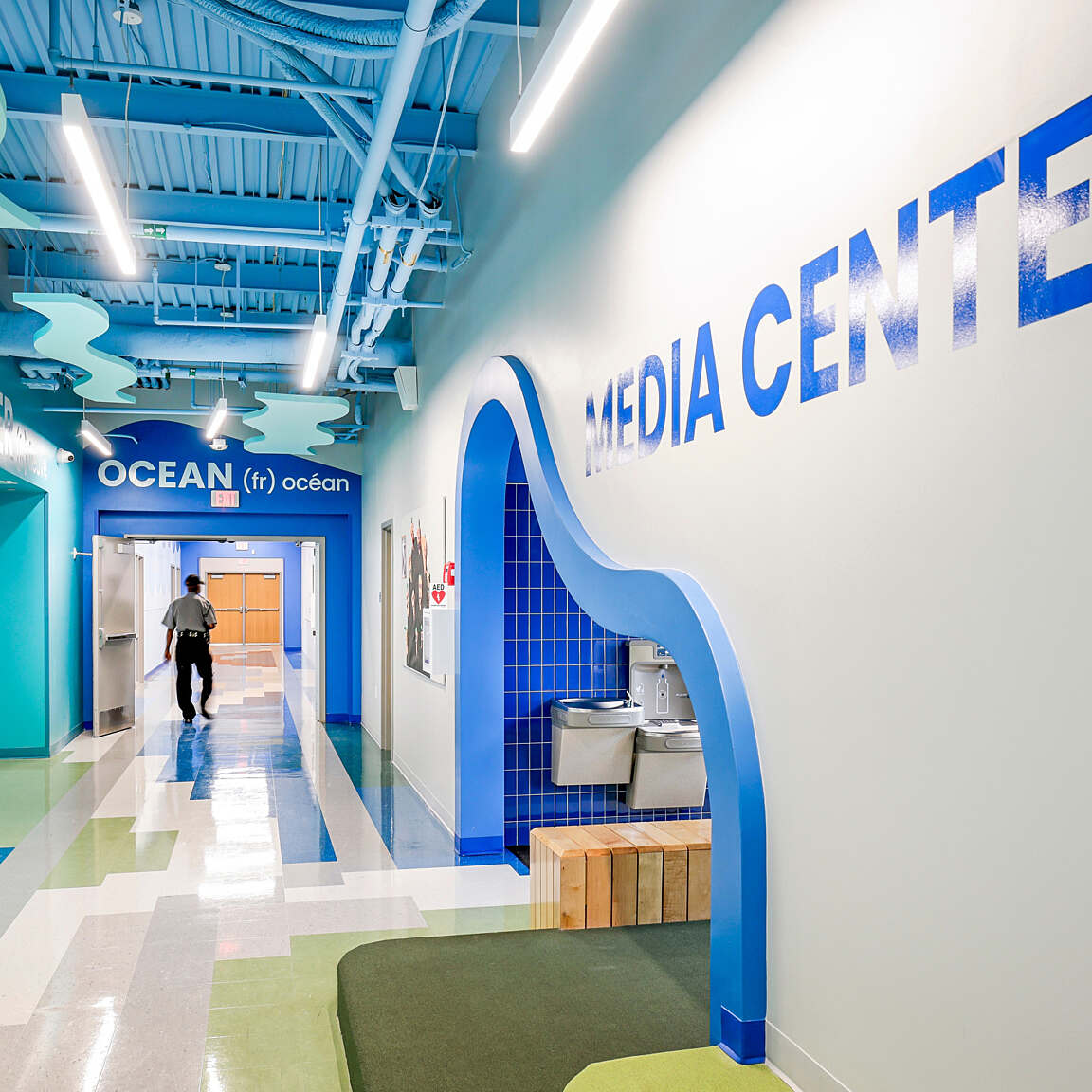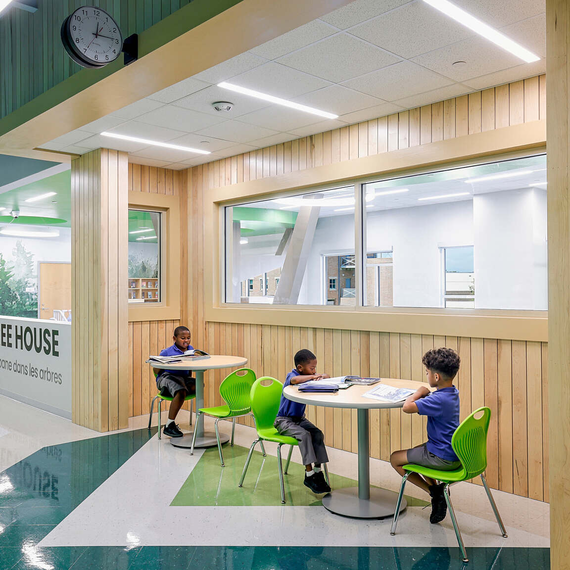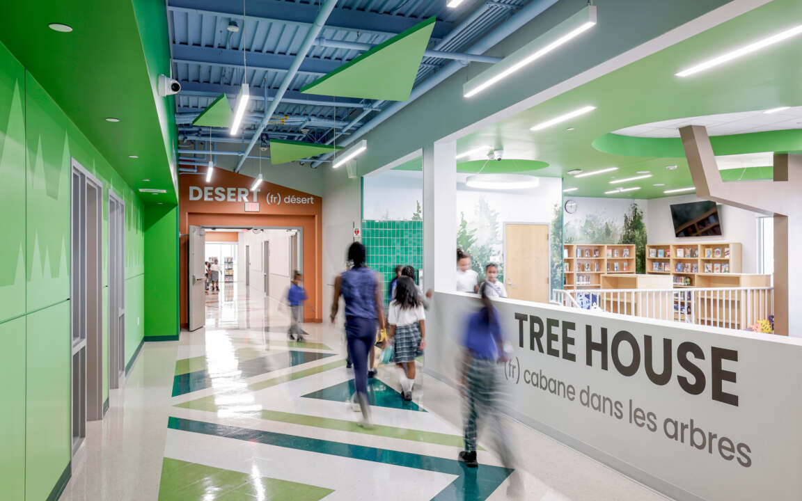 The interiors were inspired by Hynes’ focus on STEAM and were designed through a play on words, “STEM from Nature”, creating engaging settings for discovery and development.