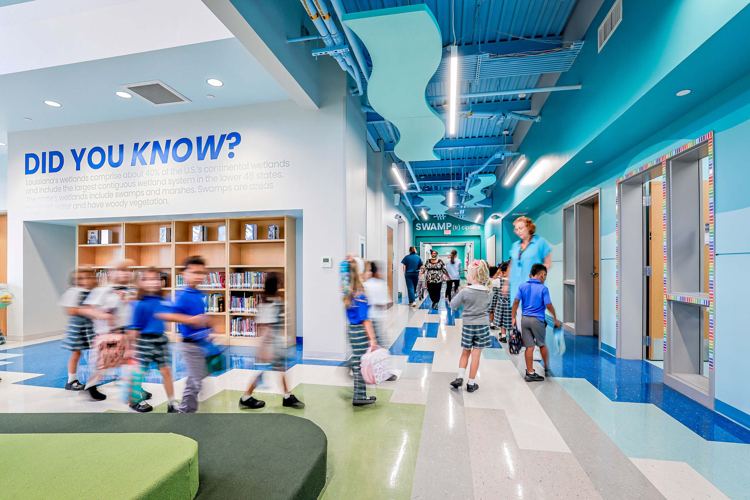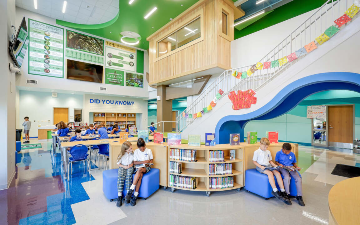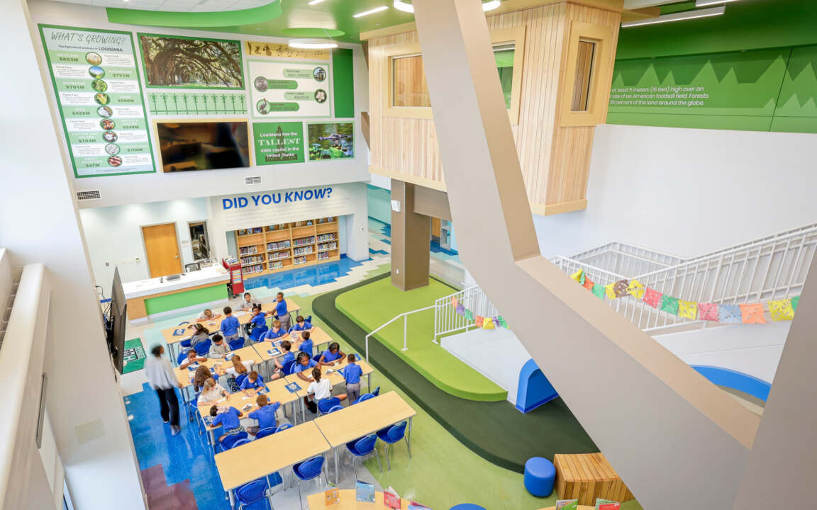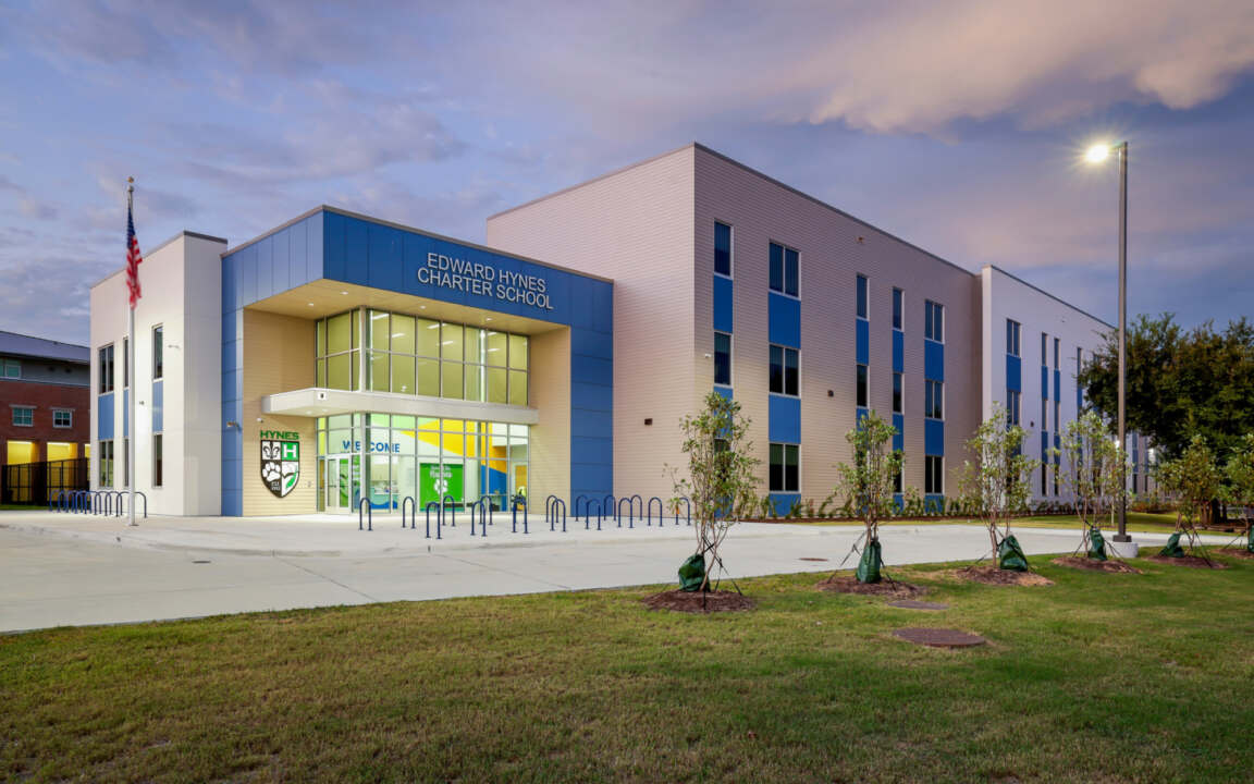 Inspired by Hynes Charter Schools’ long-standing record of academic excellence, our firm worked closely with teachers and staff to develop a student-centered learning environment to serve kindergarten through eighth grade students. Nestled between the bustling academic powerhouses of Ben Franklin High School and the University of New Orleans, the new Hynes UNO campus creates the optimal setting for its anticipated 900+ students to thrive and grow throughout their pivotal developmental years.