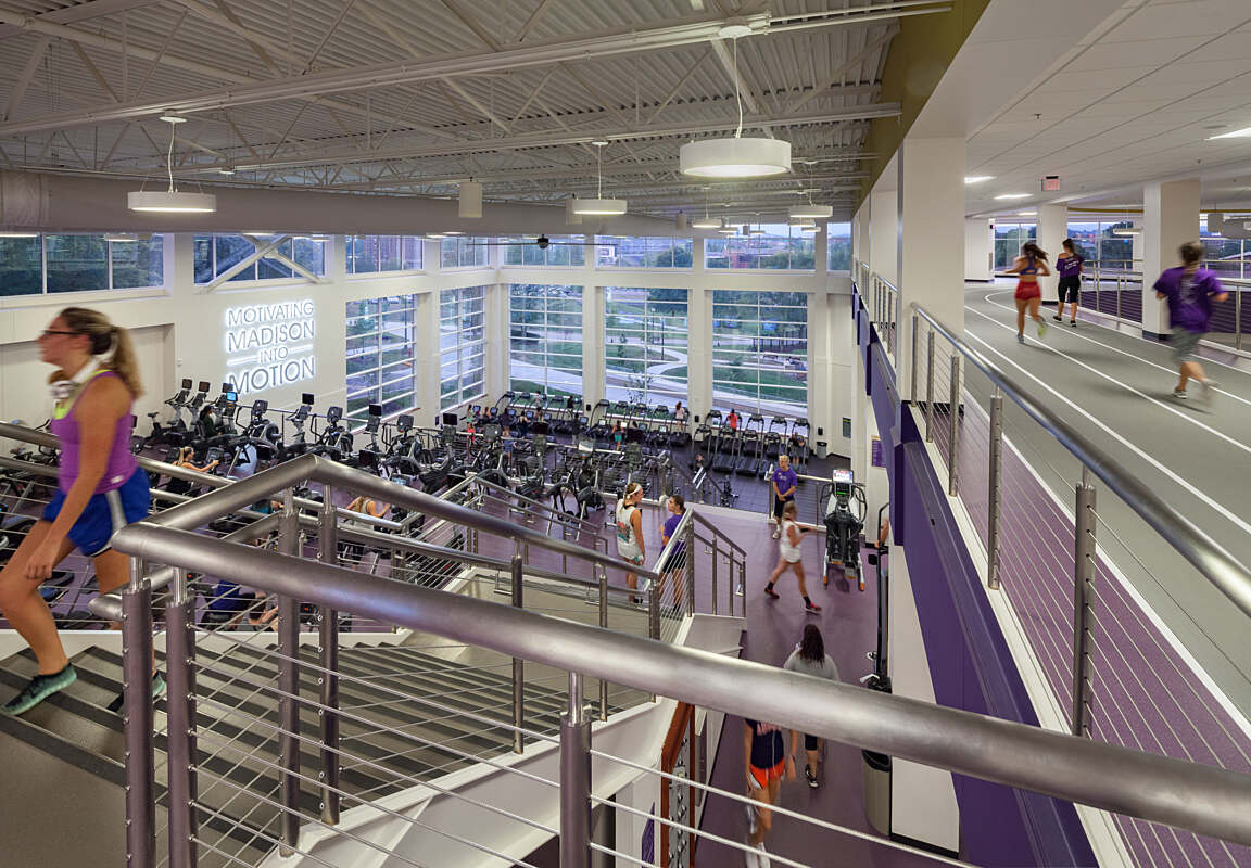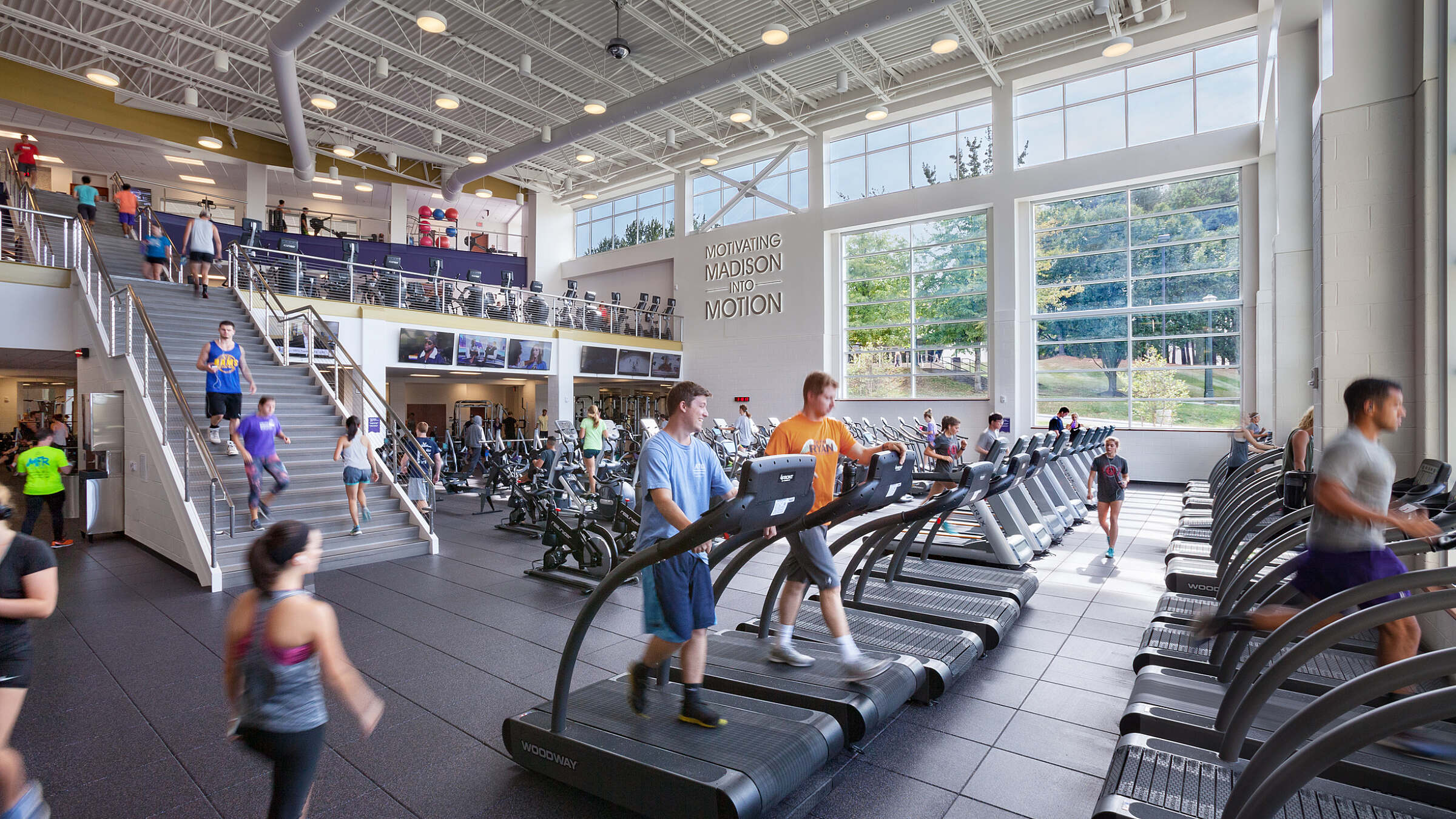 James Madison University Recreation Center is a dynamic, state-of-the-art facility that supports the health, wellness, and social engagement of the university’s growing student population. Originally built to serve 12,500 students, the expanded center now accommodates nearly 20,000, offering significantly enhanced spaces for fitness, recreation, and holistic well-being.
