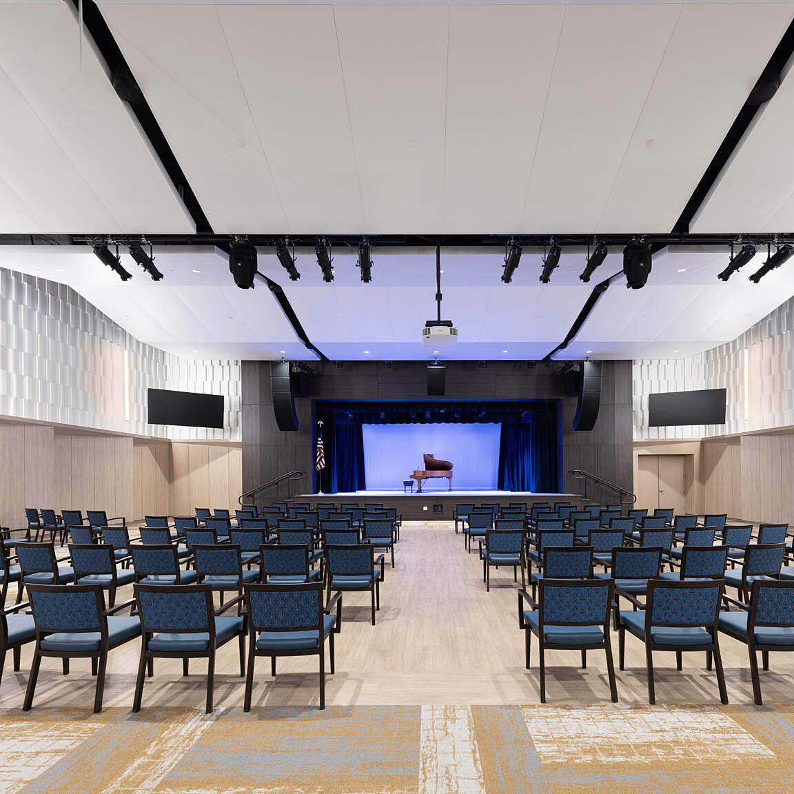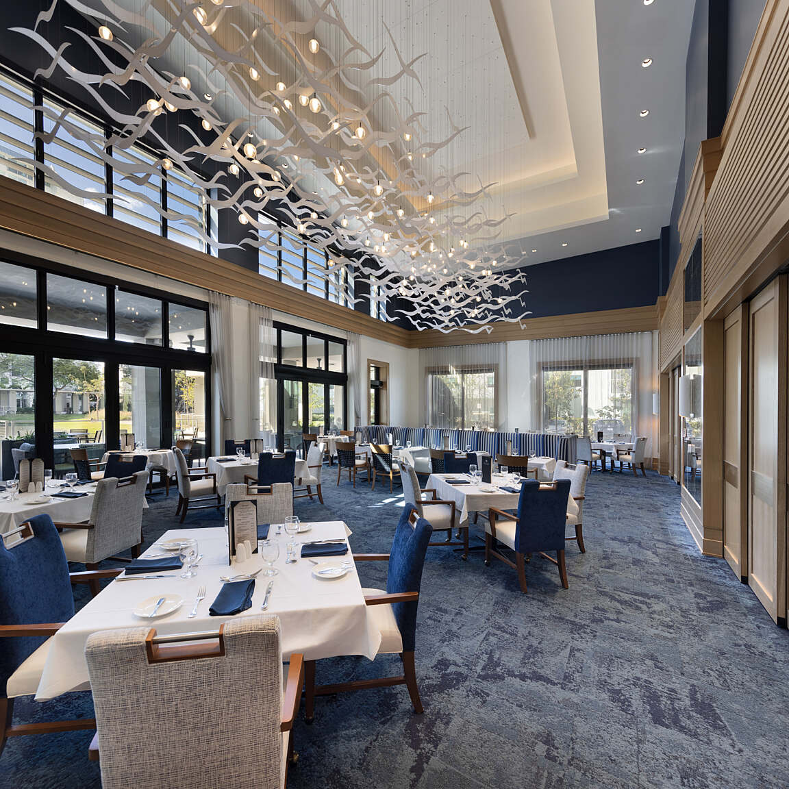 Pavilion: Campus common areas, including two dining options, commercial kitchen, large multipurpose/auditorium for events up to 400, and back-of-house service and loading. Enclosed area totals 23,500 SF, with an additional 6,000 SF of covered exterior space at the dining terraces and loading.