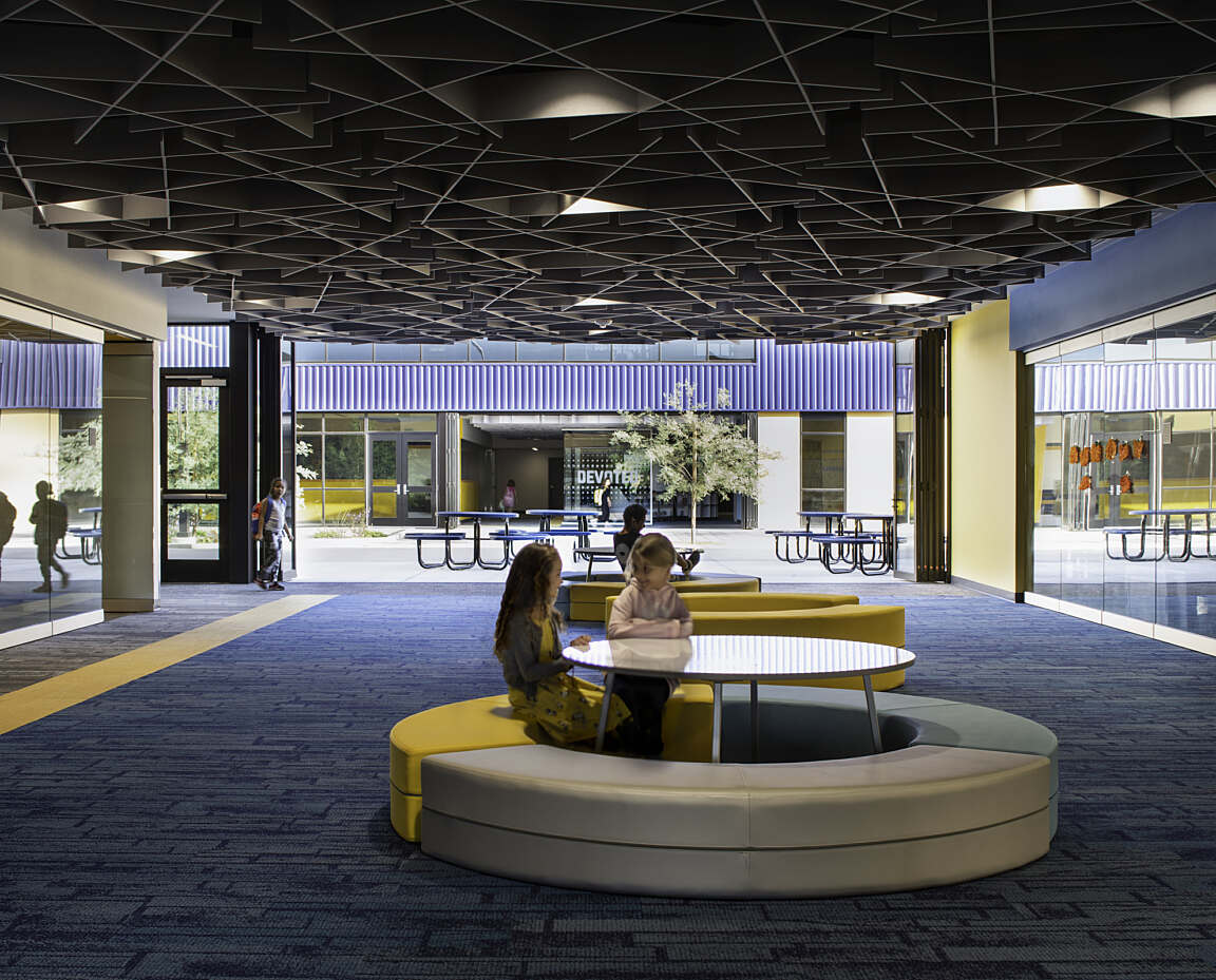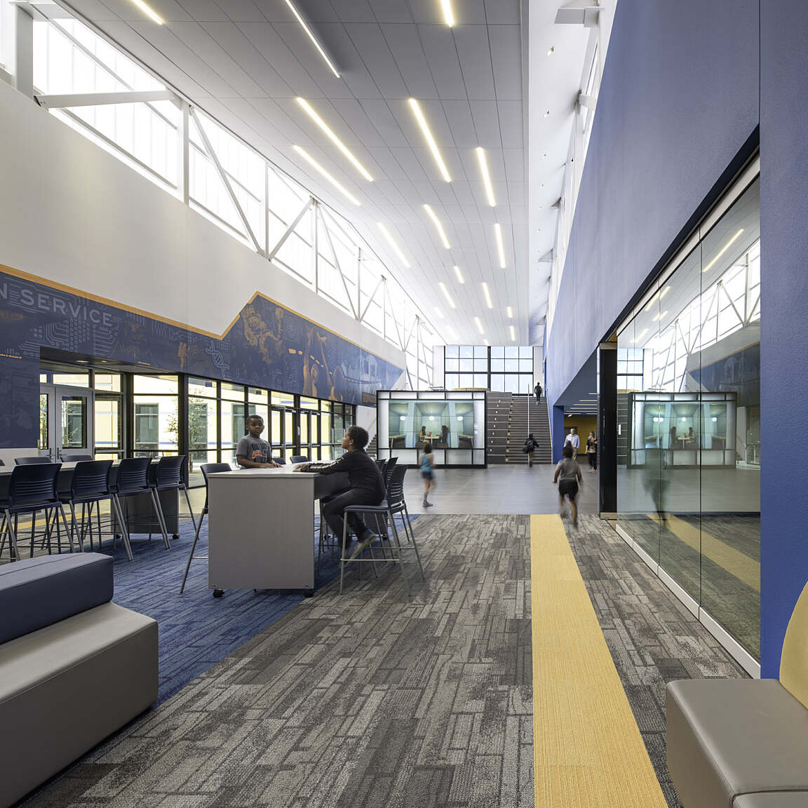 The learner-centric communities feature multi-dimensional infrastructures that support brain-based learning modalities, and offer a high degree of flexibility, variety and collaborative opportunities at multiple scales. High performance and biophilic design principles such as ample natural light, views, access to the outdoors, and balance of prospect and refuge, etc., help cater to occupant wellness while creating a solid foundation for higher order learning. The life, legacy, and ethics of Senator McCain are embedded through a branding strategy employing computational design, as traits for students to unpack through the course of their development and growth at the school.