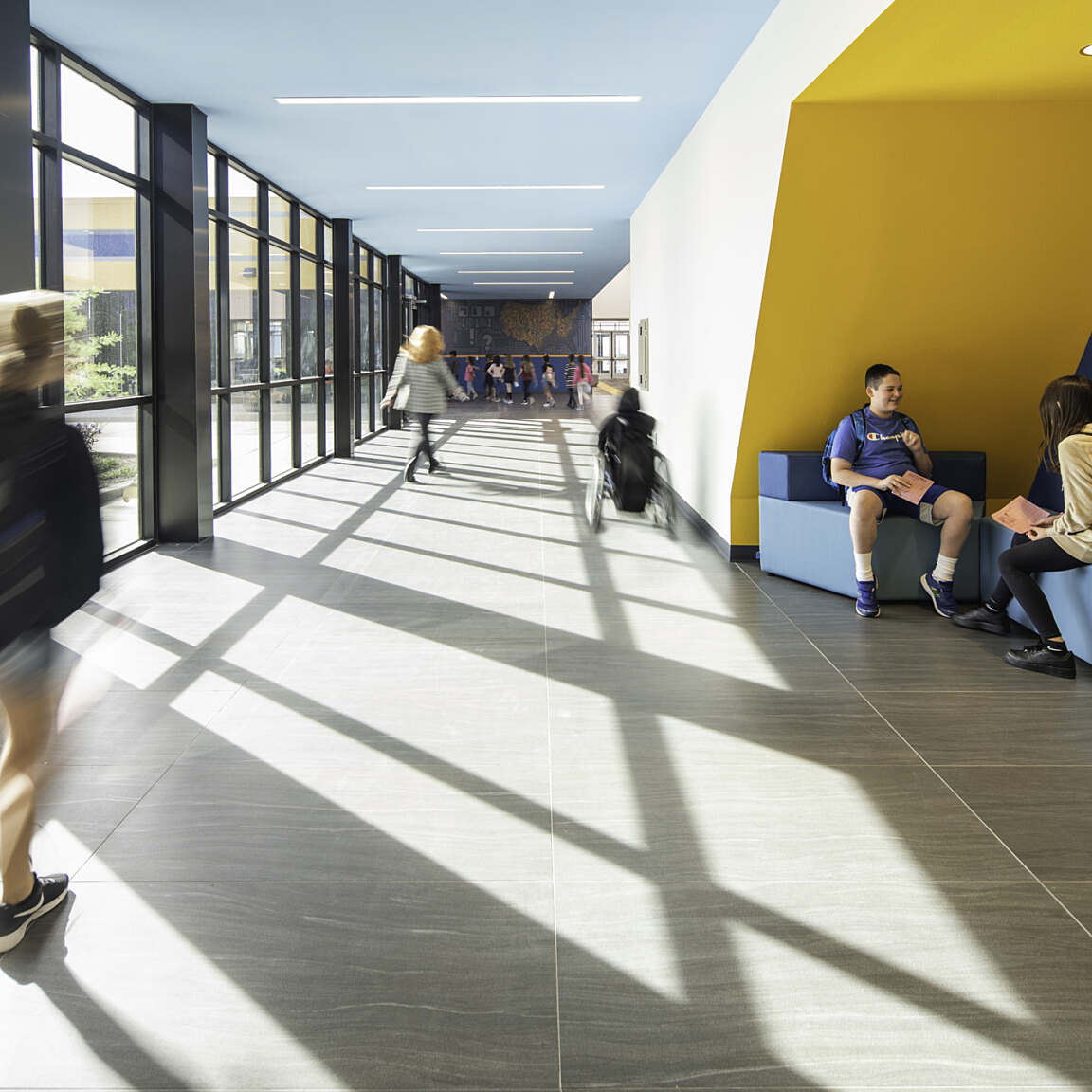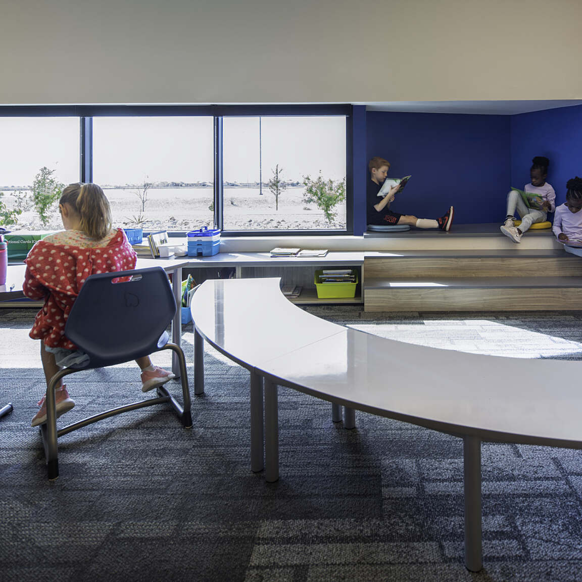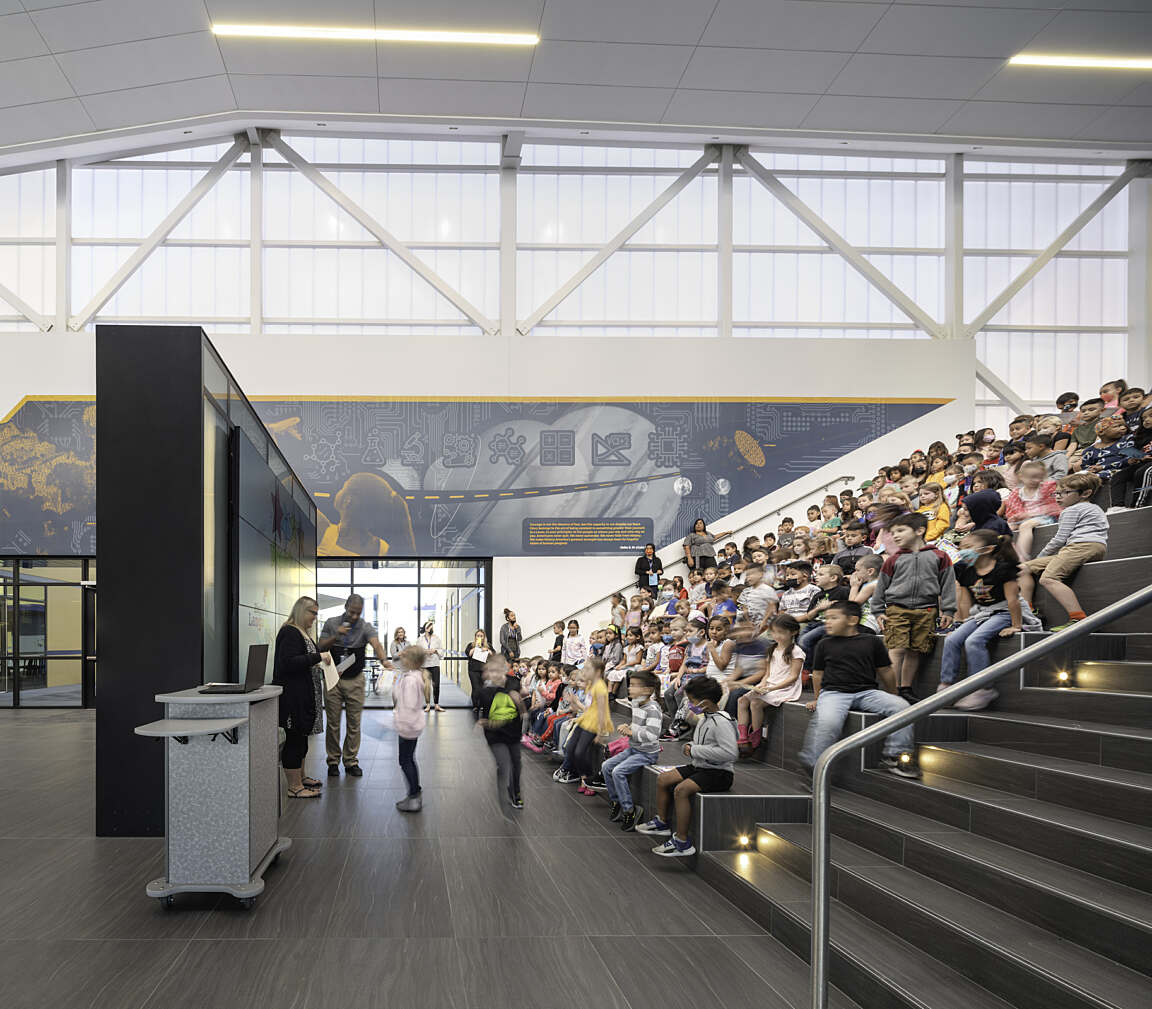 John Dewey, at the turn of the 20th Century, put forth a vision for modern education and re-imagined a future in which schools “carefully balance the delivery of knowledge and learning through active inquiry.” John S. McCain III Elementary School embraces and epitomizes these ideals and is designed as a C-STEM school that provides opportunities to learn through inquiry while simultaneously embedding an underlying architecture that foster social emotional learning. The school features a learning community-based organization with three learning communities initially operated along traditional age-based grade bands but easily adapts to an ability-based cohort organized around pedagogies involving teacher facilitated-student directed learning.