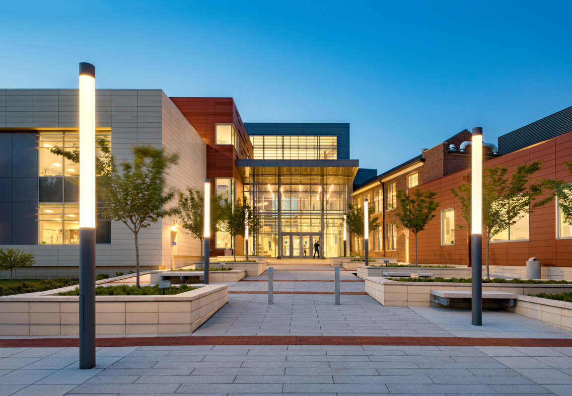 The Ladue School District engaged our firm for the replacement of the Ladue Horton Watkins High School football field with a multipurpose artificial turf field. Significant upgrades include the addition of a 1,998-spectator grandstand with a press box and viewing area on the East side of the field, updated concessions and track, and the conversion of locker rooms into public restrooms. The Nielson Gymnasium entrance was also renovated as part of this project.