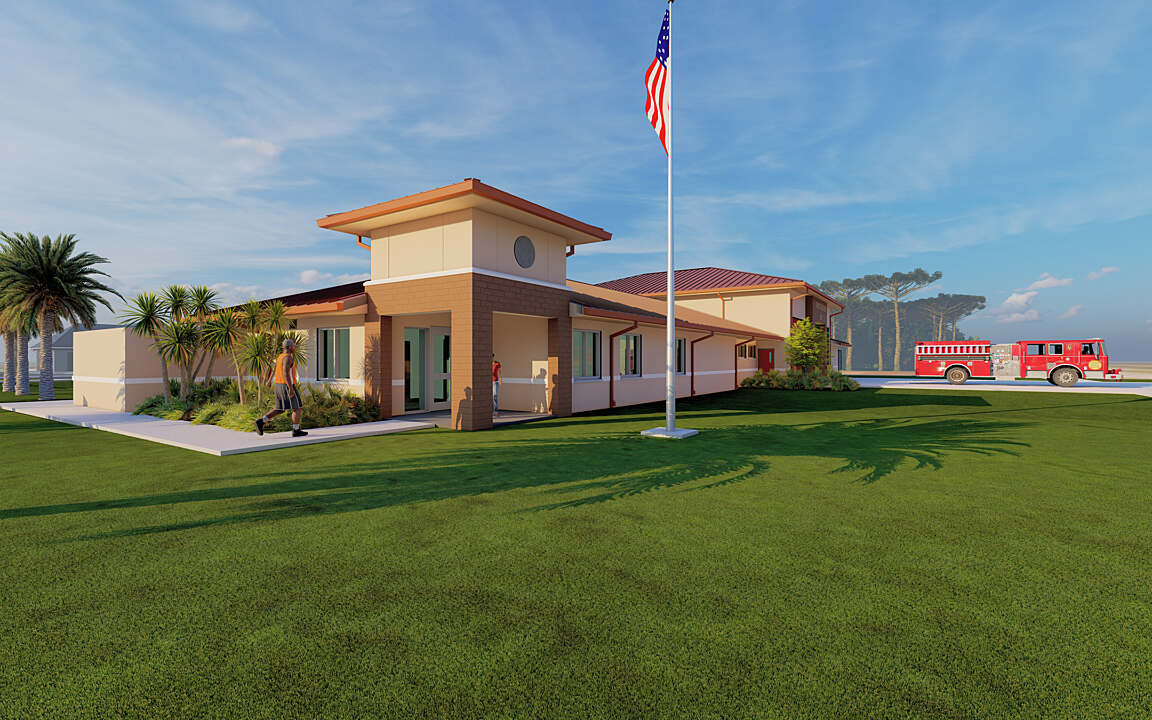 Based on the prototype design by our team, Lehigh Acres Fire Station #107 is the third re-use of this design. The fire station features three apparatus bays for emergency vehicles and a decontamination area where firefighters can remove contaminated clothing, shower, and change into clean clothing before entering the building's living/workspace.