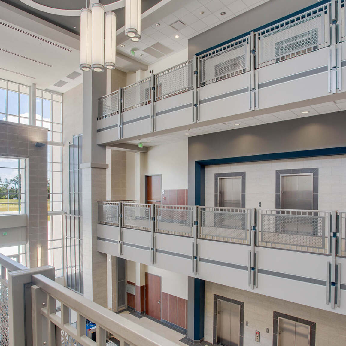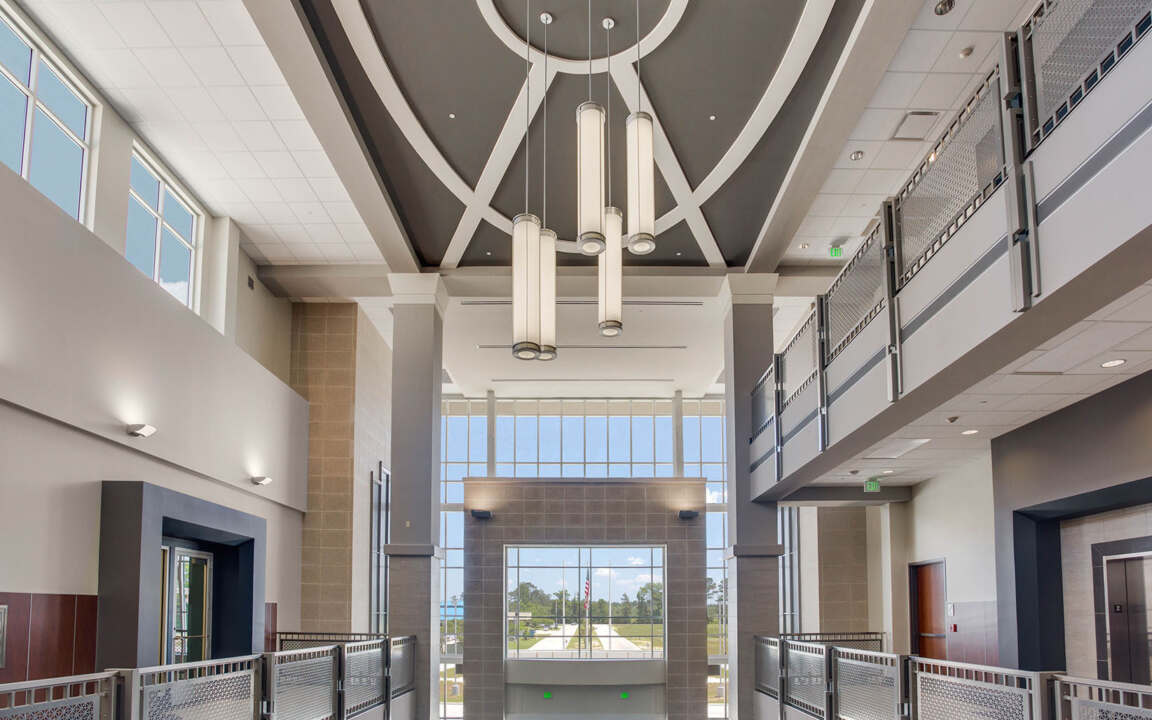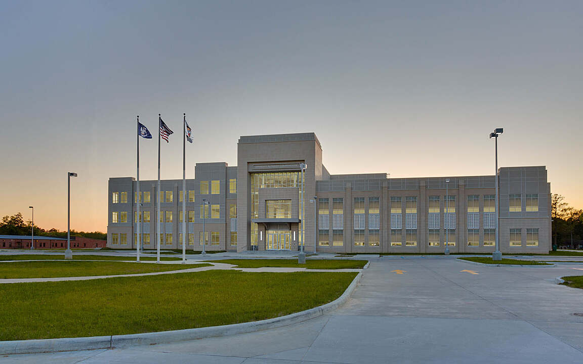 The new Livingston Parish Courthouse, completed as a joint venture, houses the 21st Judicial District Court, the Livingston Parish Sheriff’s Office, and the offices of the District Attorney and Clerk of Court. The 96,000-square-foot facility also includes five courtrooms, a large jury selection/multipurpose room, and offices and administrative space for judges. The facility is designed to allow for future expansion should additional courtrooms and judicial staff be required.