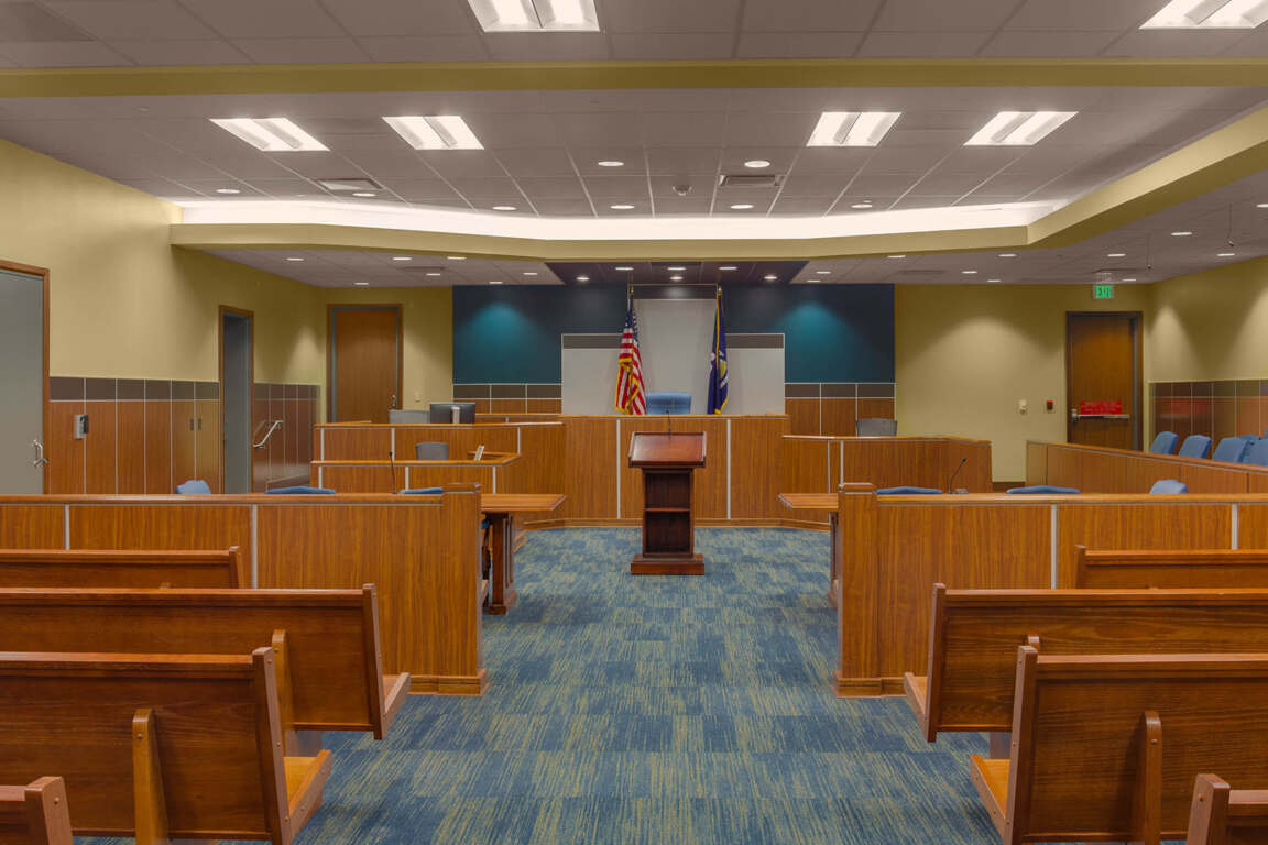 The Courthouse features modern audiovisual systems in each courtroom and supports paperless filing and public transaction systems.