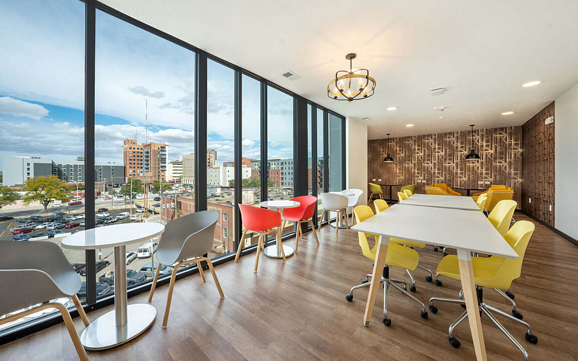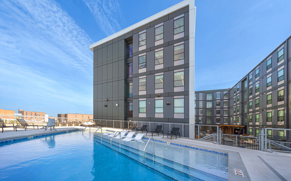LivRed is a cutting-edge student housing development situated next to the University of Nebraska’s main campus in Lincoln. This luxury complex contains 154 units and 595 beds for students. The 7-story building, complete with a parking garage, showcases state-of-the-art technologies and exclusive resident amenities.