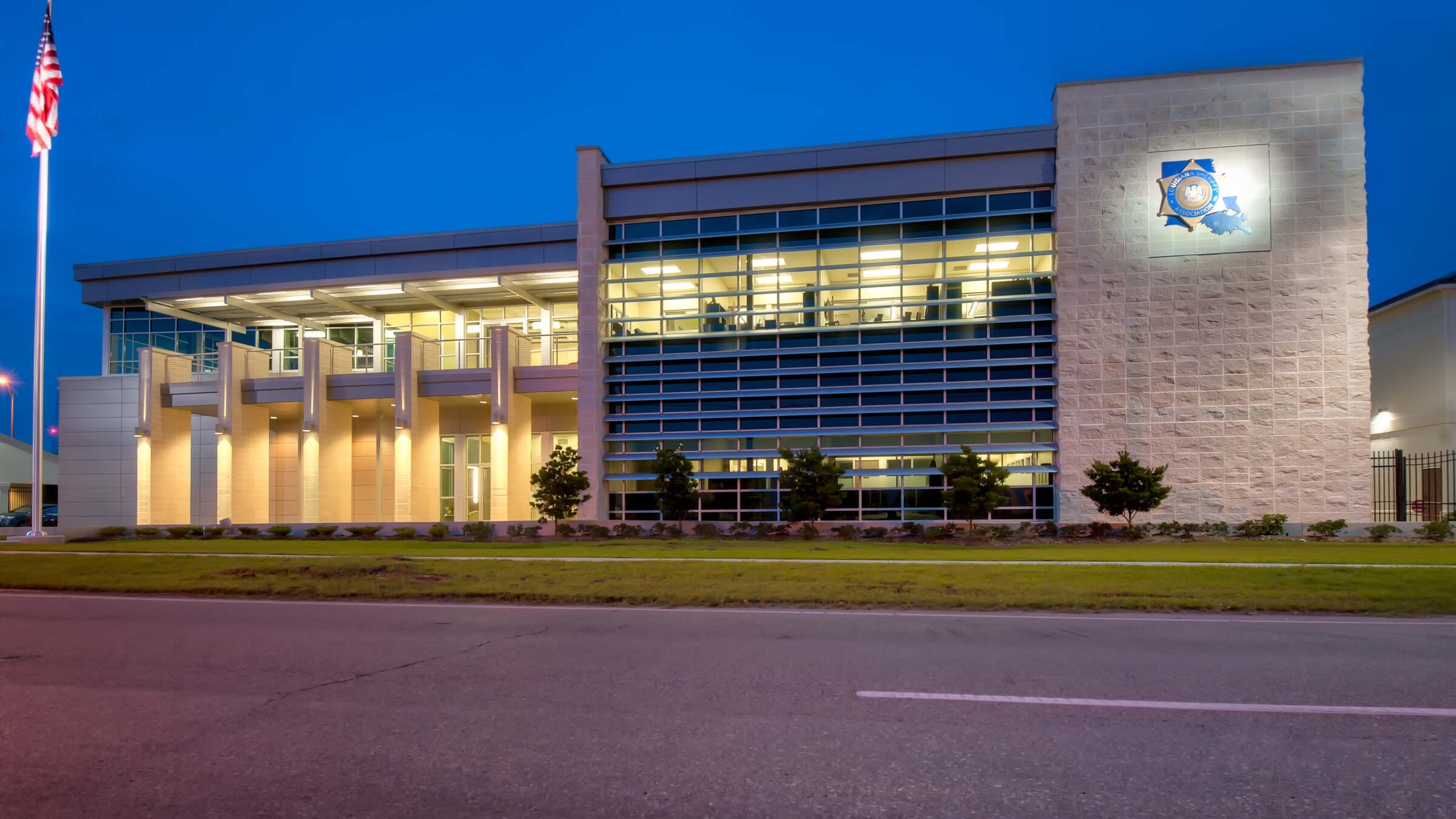The headquarters of the Louisiana Sheriff’s Association, offer a unifying space for law enforcement leaders statewide. As such, the building’s architectural character had to reflect integrity and civic commitment. Our firm accomplished this design goal by creating a durable, modern facade that incorporates glass, metal panels and textured concrete block — communicating both strength and transparency.