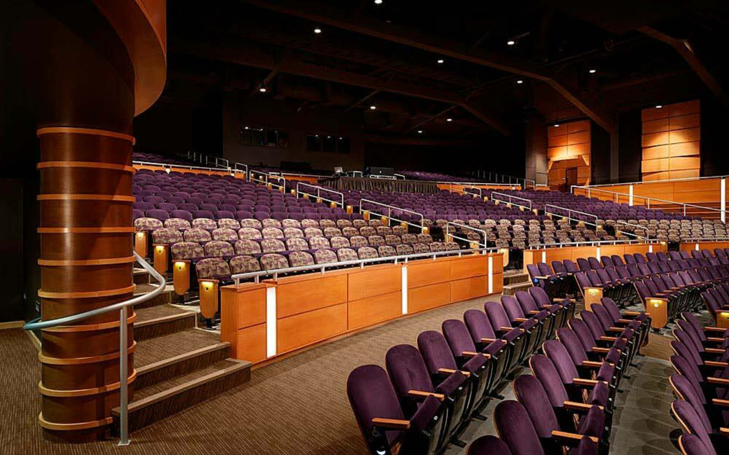 The renovated Union Theater now offers larger and more welcoming lobbies as well as new circulation paths, including stairs at both crossover aisle elevations. New support spaces include a box office, a pre-function reception room and dressing rooms.