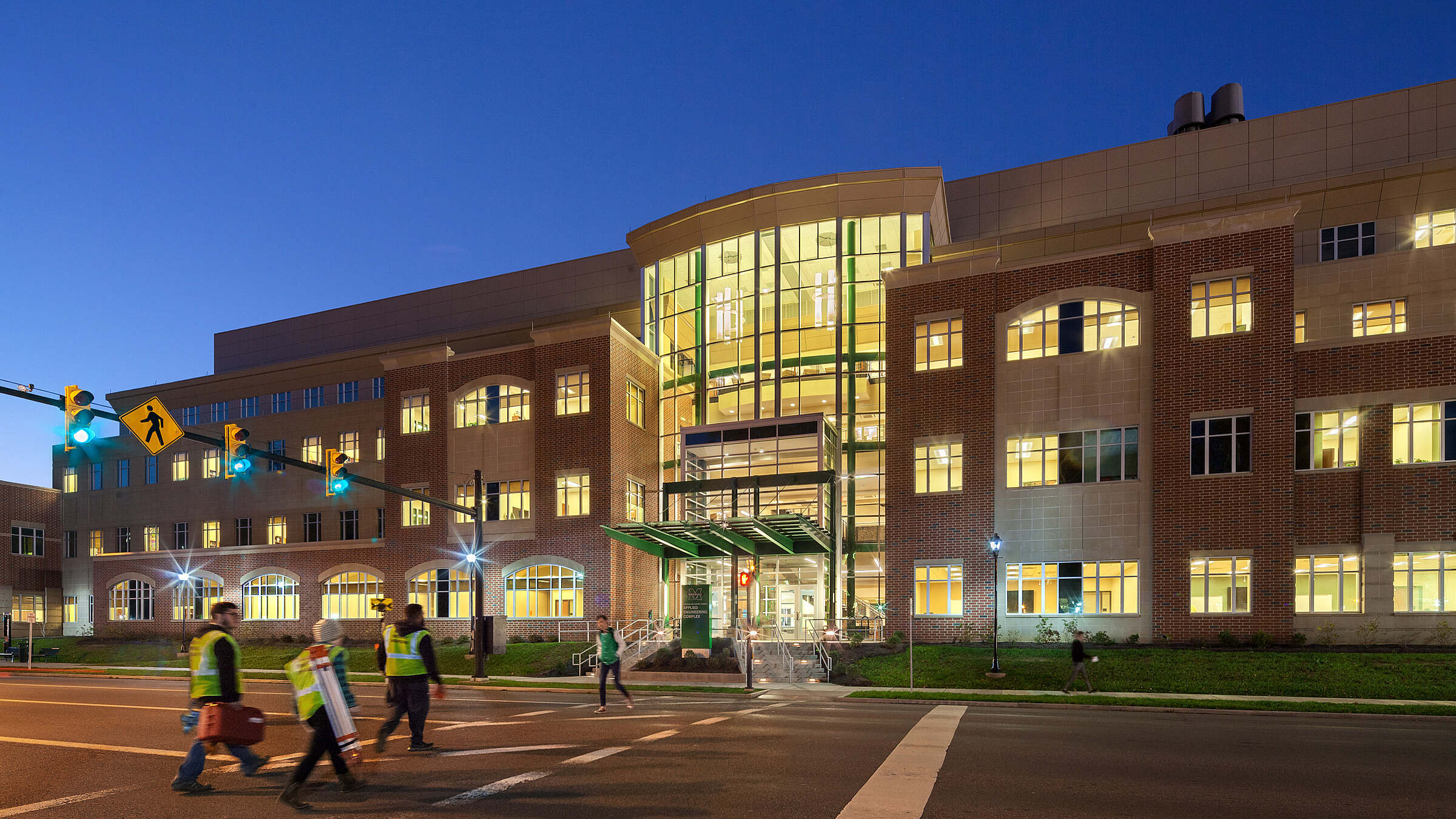 The four-story facility is carefully organized to foster collaboration among the university’s colleges and research corporations. Faculty offices from the various departments are deliberately interspersed to encourage cross-disciplinary interaction, while dedicated collaboration areas are equipped with integrated technology to support student and faculty engagement. A central atrium provides a visual and social anchor, offering a window into the building’s activity. Designed with sustainability in mind, the building is LEED Gold certified and features stormwater harvesting systems, a green roof, and the reuse of graywater—all of which serve as hands-on learning tools that support the university’s educational and environmental goals.