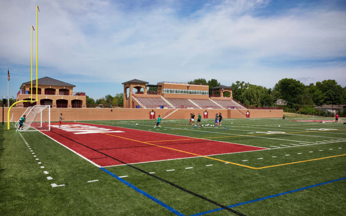The existing stadium at Mary Institute & St. Louis Country Day School (MICDS) was approximately 50 years old, and past the end of its useful lifespan. In addition, the natural grass field was causing significant weather-related downtime. Our firm was engaged to develop a new stadium complex that allows the school to strengthen their athletic program, enhance the regional presence of the school, reduce downtime and maintenance requirements and offer increased seating capacity.