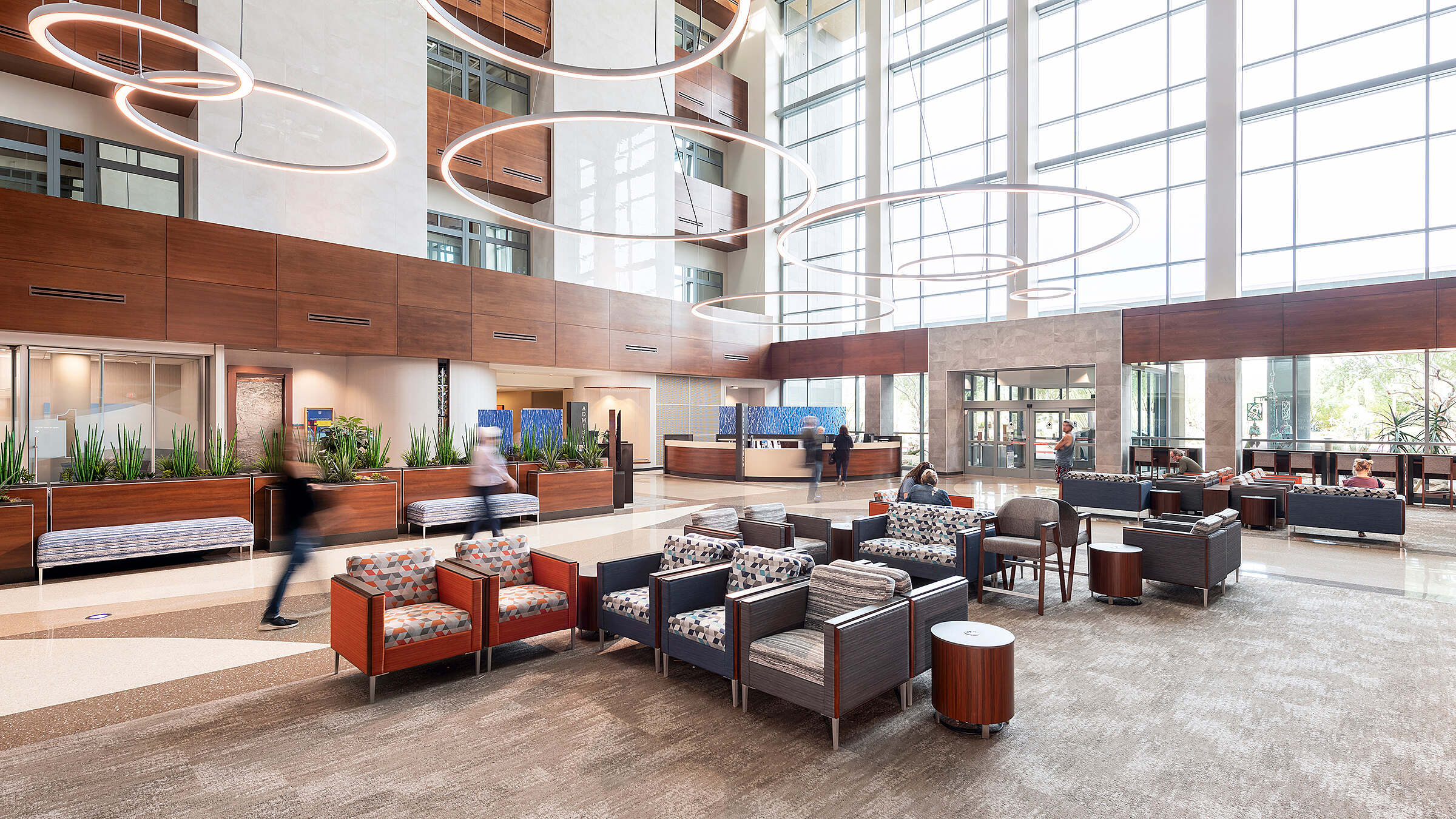 The Mayo Clinic Lobby Revitalization began as a flooring replacement but quickly evolved into a comprehensive transformation of the Phoenix campus entrance, designed to serve the next twenty years. Leadership recognized an opportunity to align the space with a broader vision, leading to a full-scale remodel of the five-story lobby that reflects both the future of the clinic and its longstanding identity.