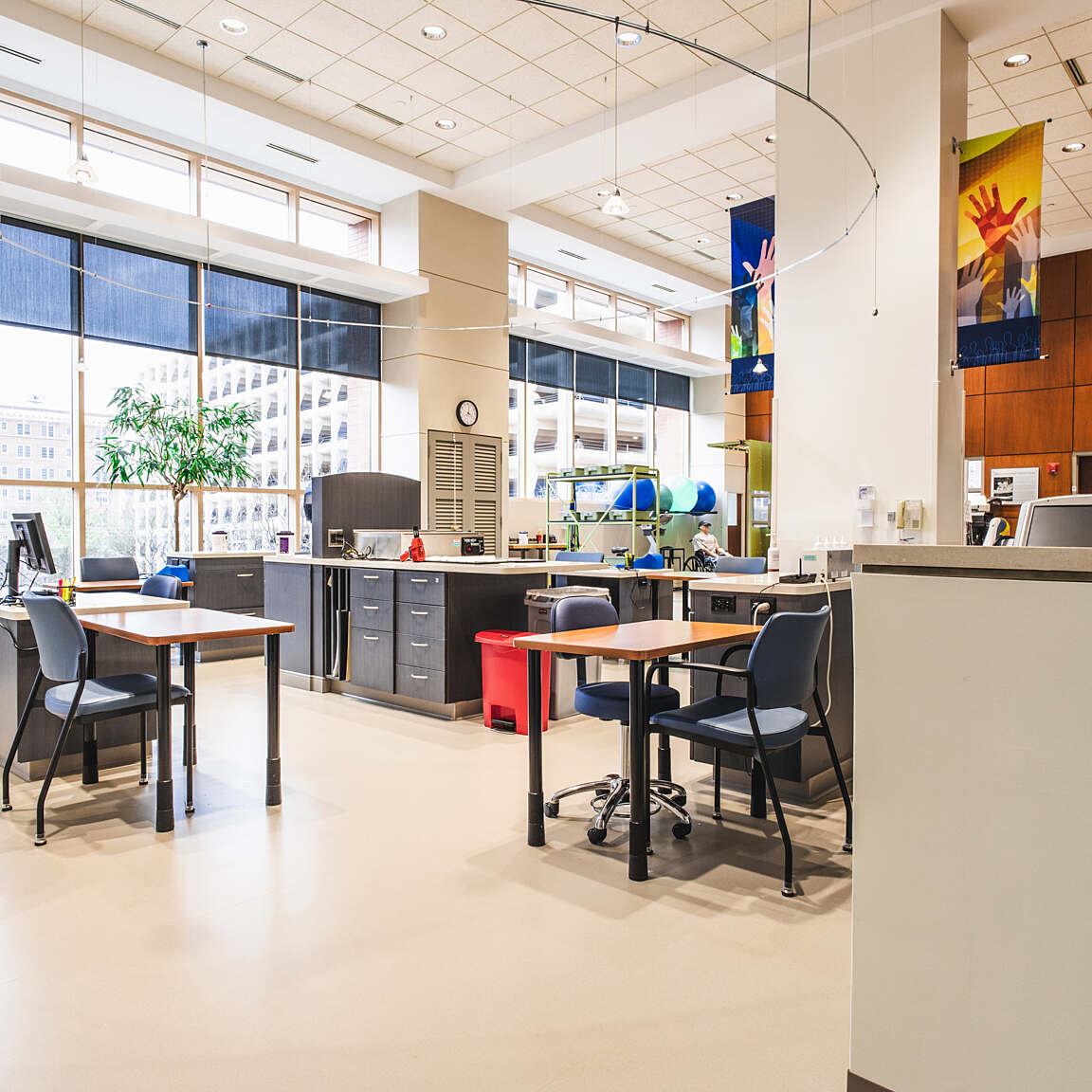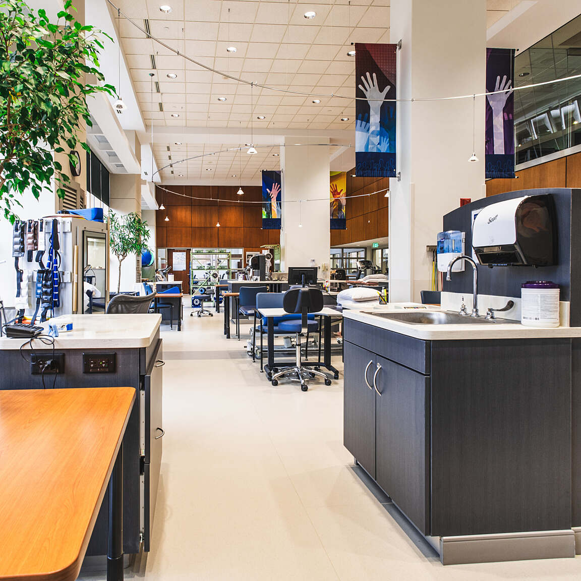 The interior renovations for the Curtis National Hand Center represented a significant opportunity to enhance the overall functionality, efficiency, and patient experience within the facility. The design team was committed to delivering a transformative design solution that not only met the project objectives, but also exceeded the expectations of MedStar Union Memorial Hospital and its stakeholders. All design elements adhered to ADA accessibility guidelines in compliance with healthcare design guidelines and standards, as well as best practices and evidence-based design.
