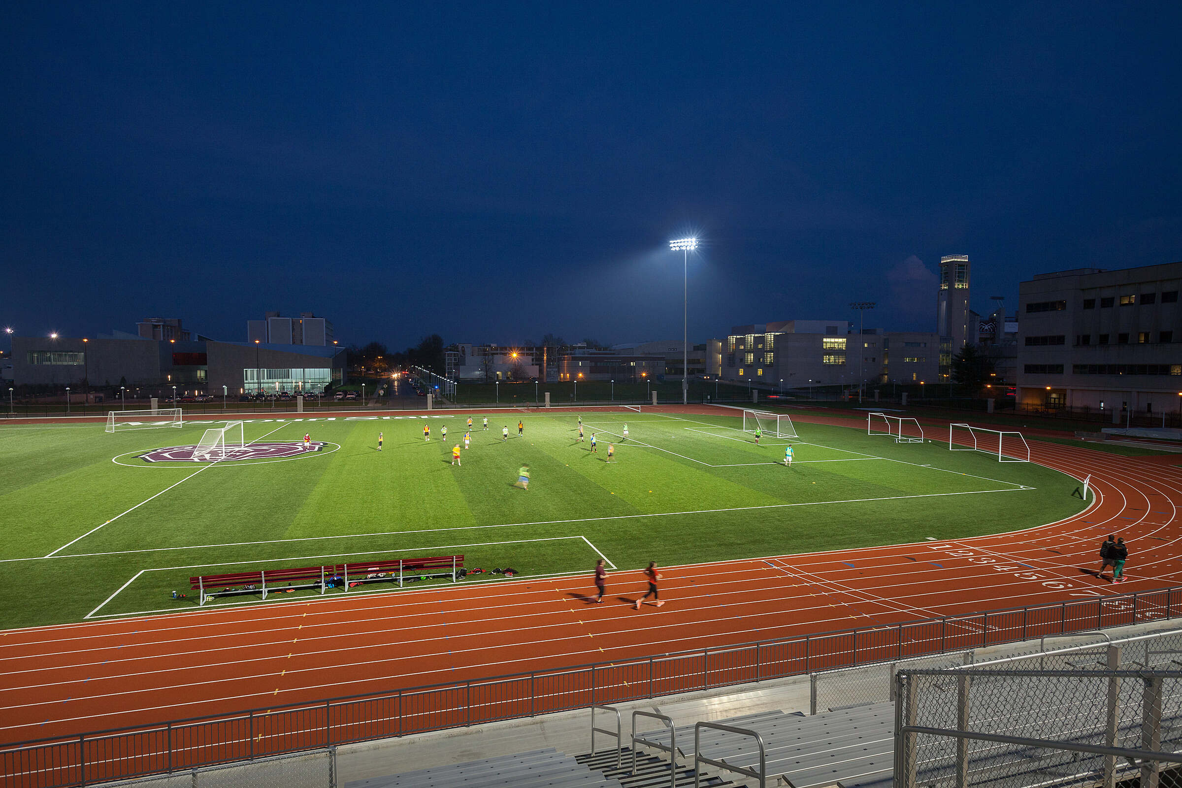 A new track, field, and soccer stadium seats 1,000 fans and supports the full range of field events. A pressbox and video platform are also incorporated.