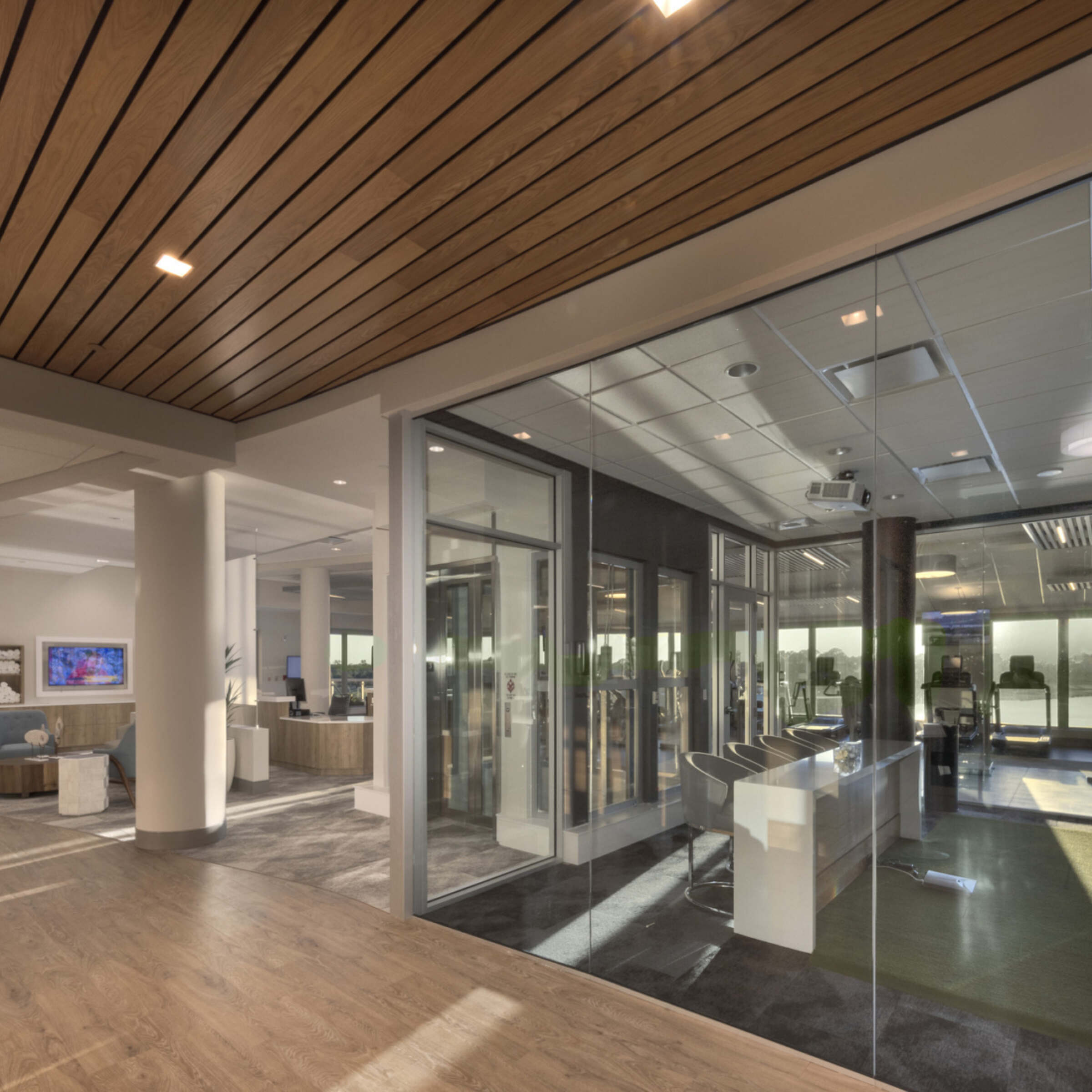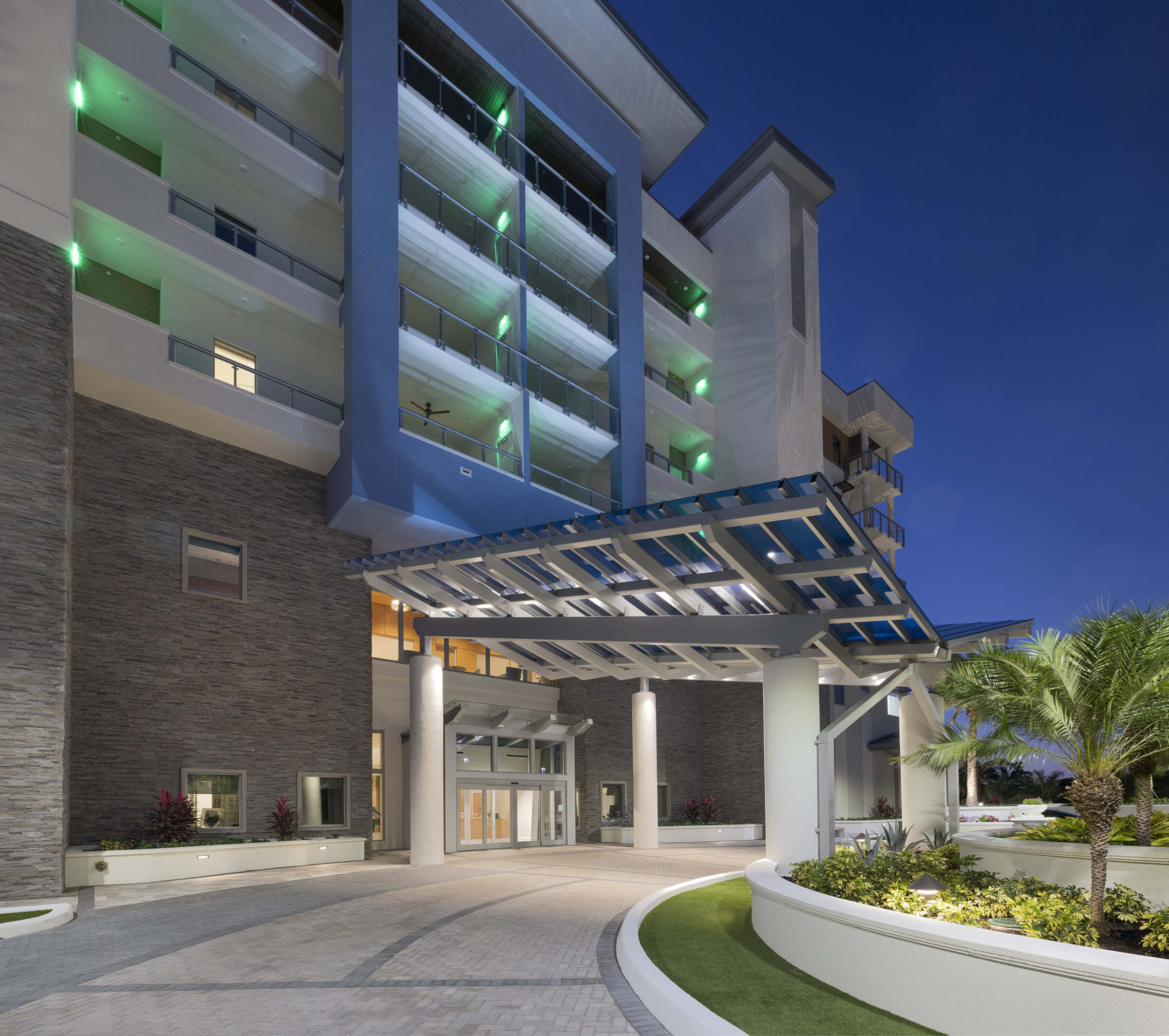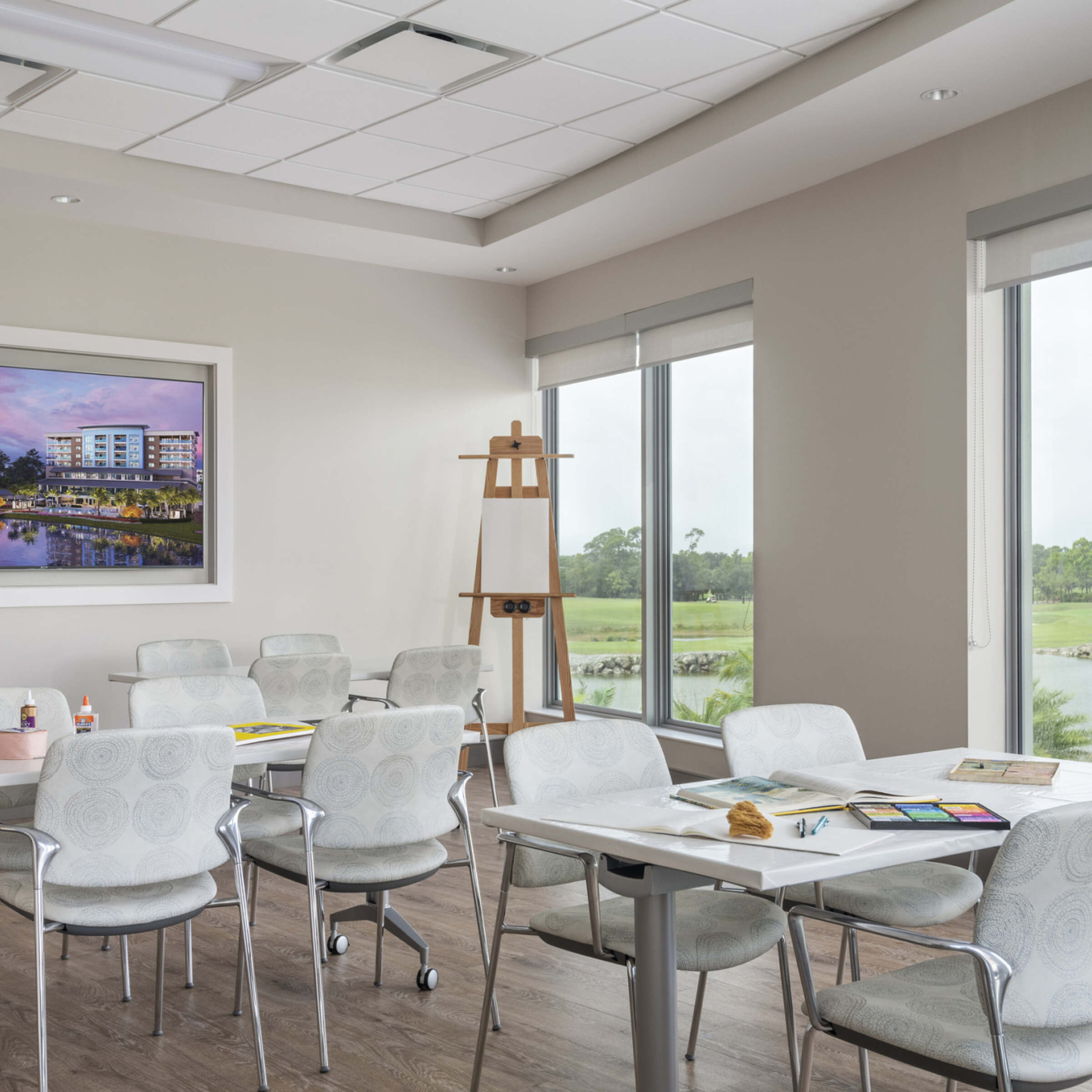 The amenities portion of the building includes the Center for Healthy Living which consists of three floors and approximately 73,000 SF. The Center consists of Casual and Fine Dining venues, a Private Dining Room, Art Studio, Wellness Center, Fitness Center, Golf Simulator, a 120 seat Theater, Art Studio, Concierge Health Clinic, Rehabilitative Services, Salon and Spa.