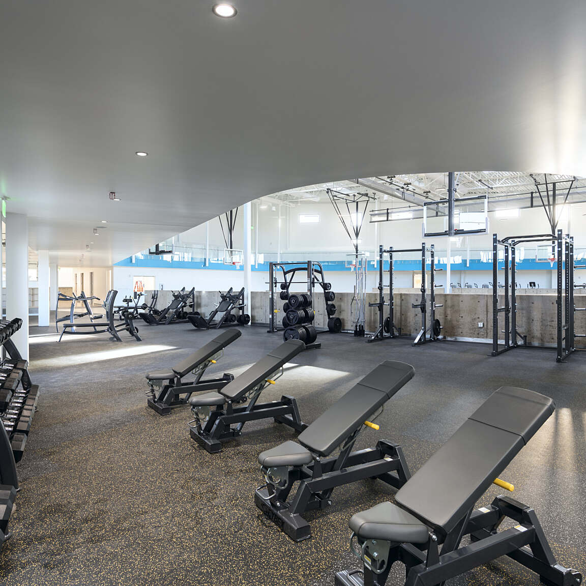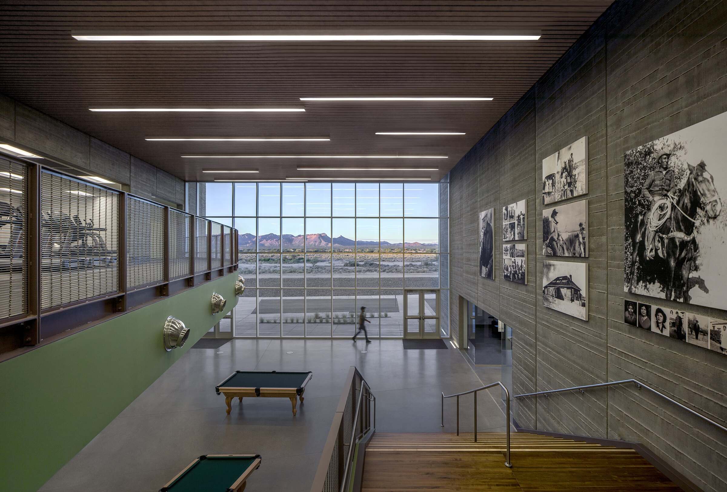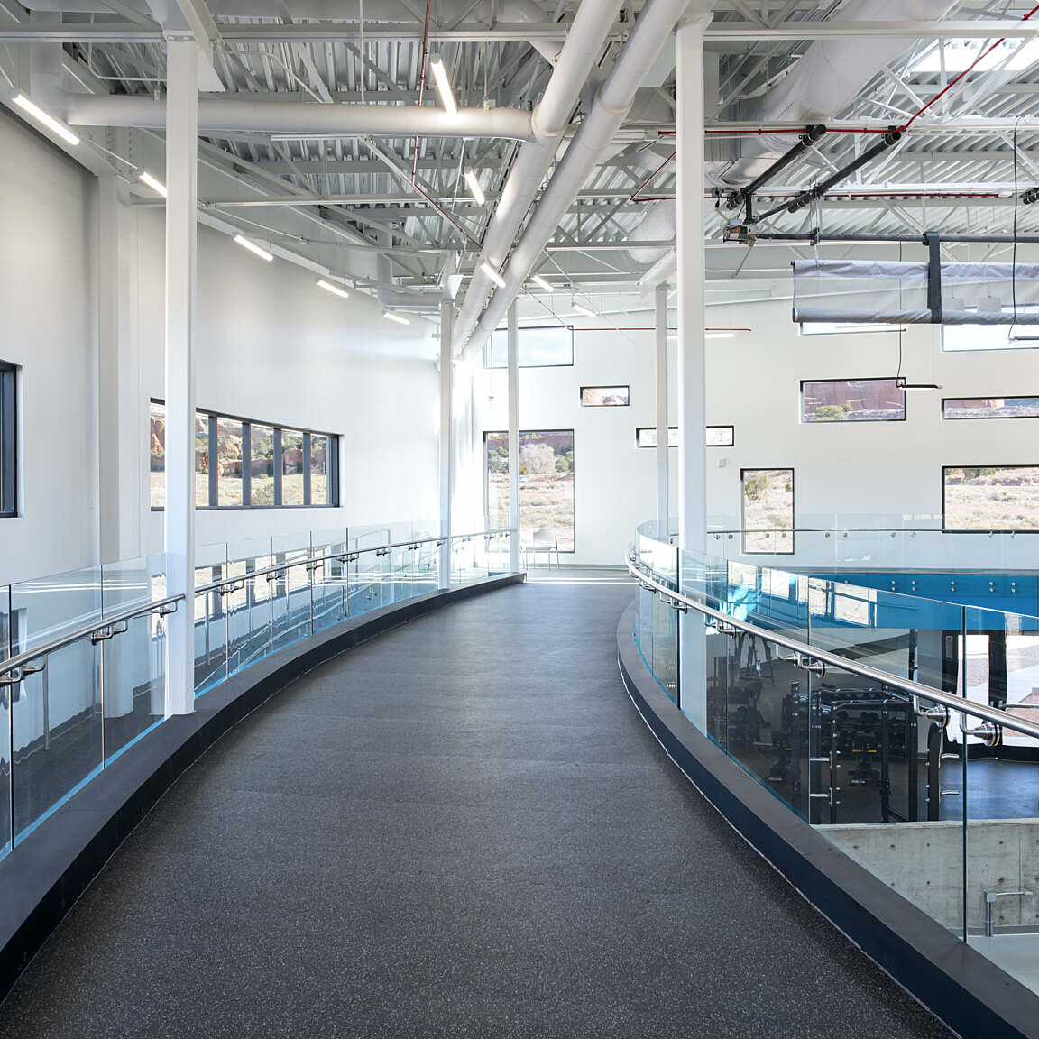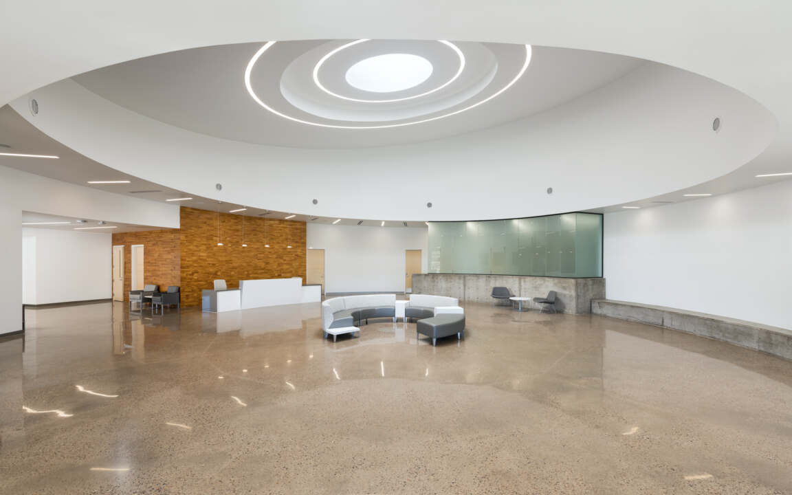 Locating the central common gathering space so that the land can be formed to create entries at both the upper and lower levels bring this intersection to life in three dimensions, allowing the user to experience this space from either point of entry. The wellness center includes a fitness center, clinic, and administration wing. Gathering from culture and landscape, the wellness center promotes Hozho from the center outward to connect Navajo people to their rich, diverse culture.