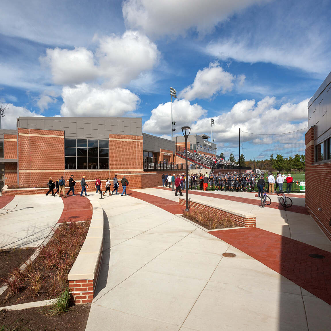Great care was taken to ensure visitors are able to navigate the new grounds easily. Impressive gates greet fans as they enter the landscaped plaza. In a nod to the city of Oberlin, the plaza walkways are accented with the same red bricks as found on the Tappan Square, a National Historic Landmark.