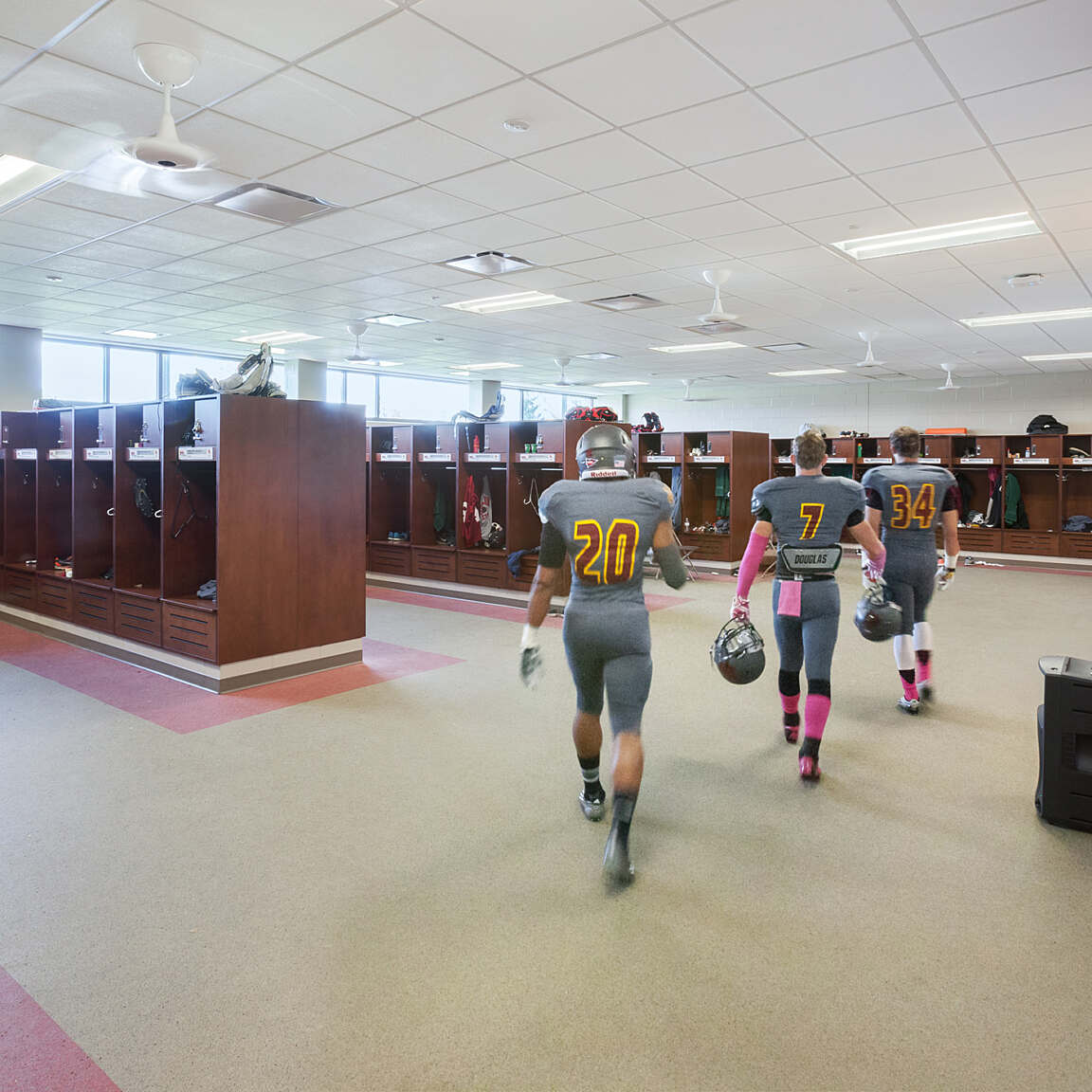 - Locker room flooring is made of recycled rubber.