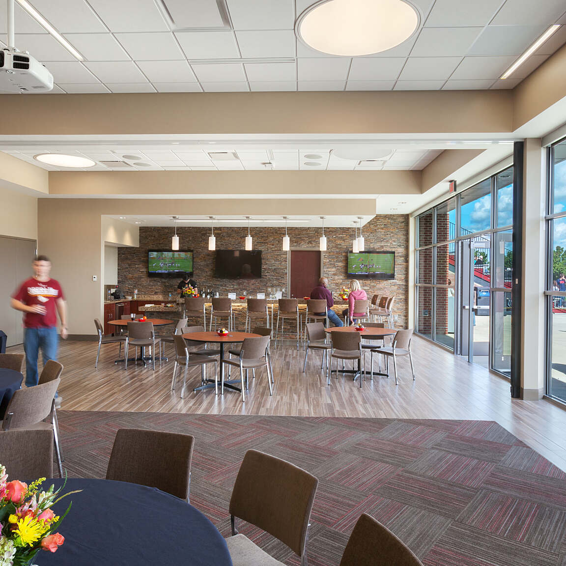 The design team met with a variety of stakeholders — trustees, coaches, students, facilities planning, IT, and custodial staff — early in the process to gain consensus on overall needs of the new facility. That proactive approach led to all users feeling they had a voice in determining the final outcome.
