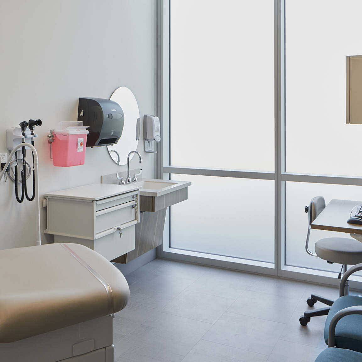 For better communication between staff, rooms are broken into clinic pods. This new design approach allows primary care and other subspecialties to be designated into three exam rooms for specific doctors.