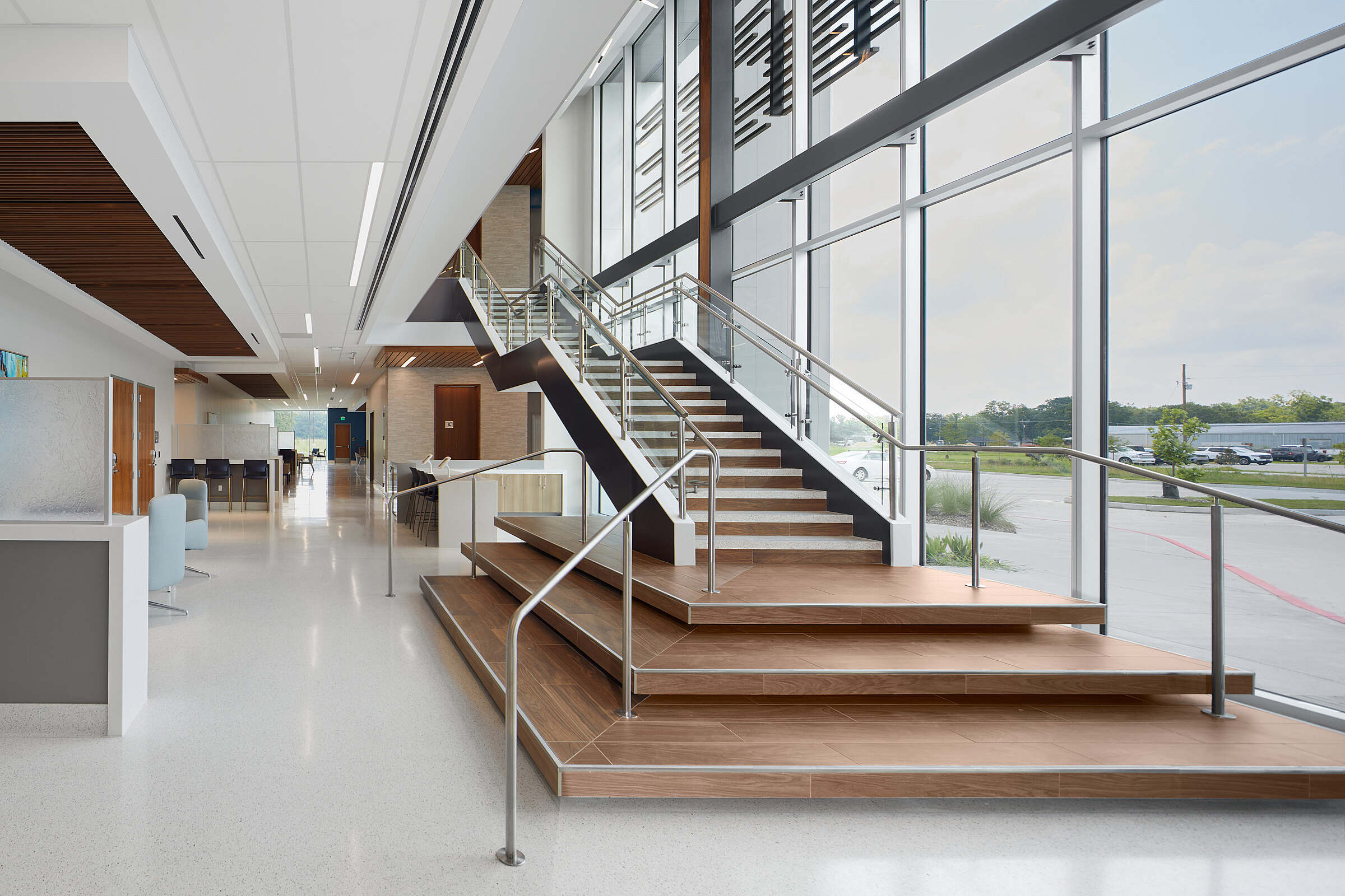 The 51,600-sf two-story facility has 18 exam rooms for primary care and other subspecialties such as a laboratory, and a full radiology suite with MRI. The second floor is left unfinished to make for easy expansion in the future as demand grows in the region.