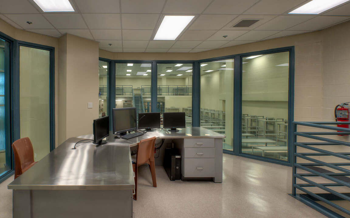 The Intake Processing Center features a secure and enclosed vehicle sally port to allow for safer detainee transfer and processing.