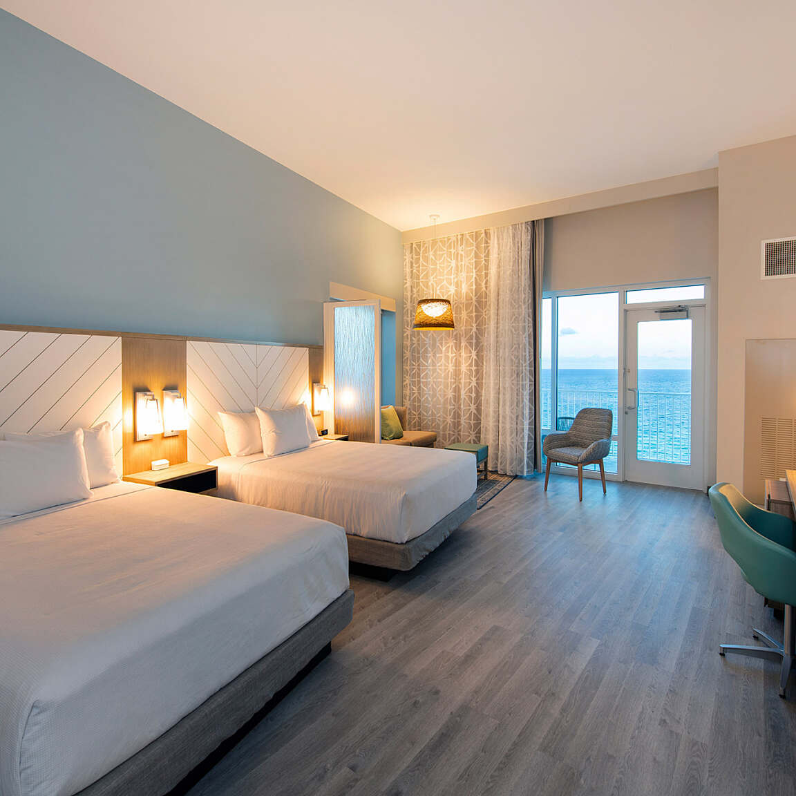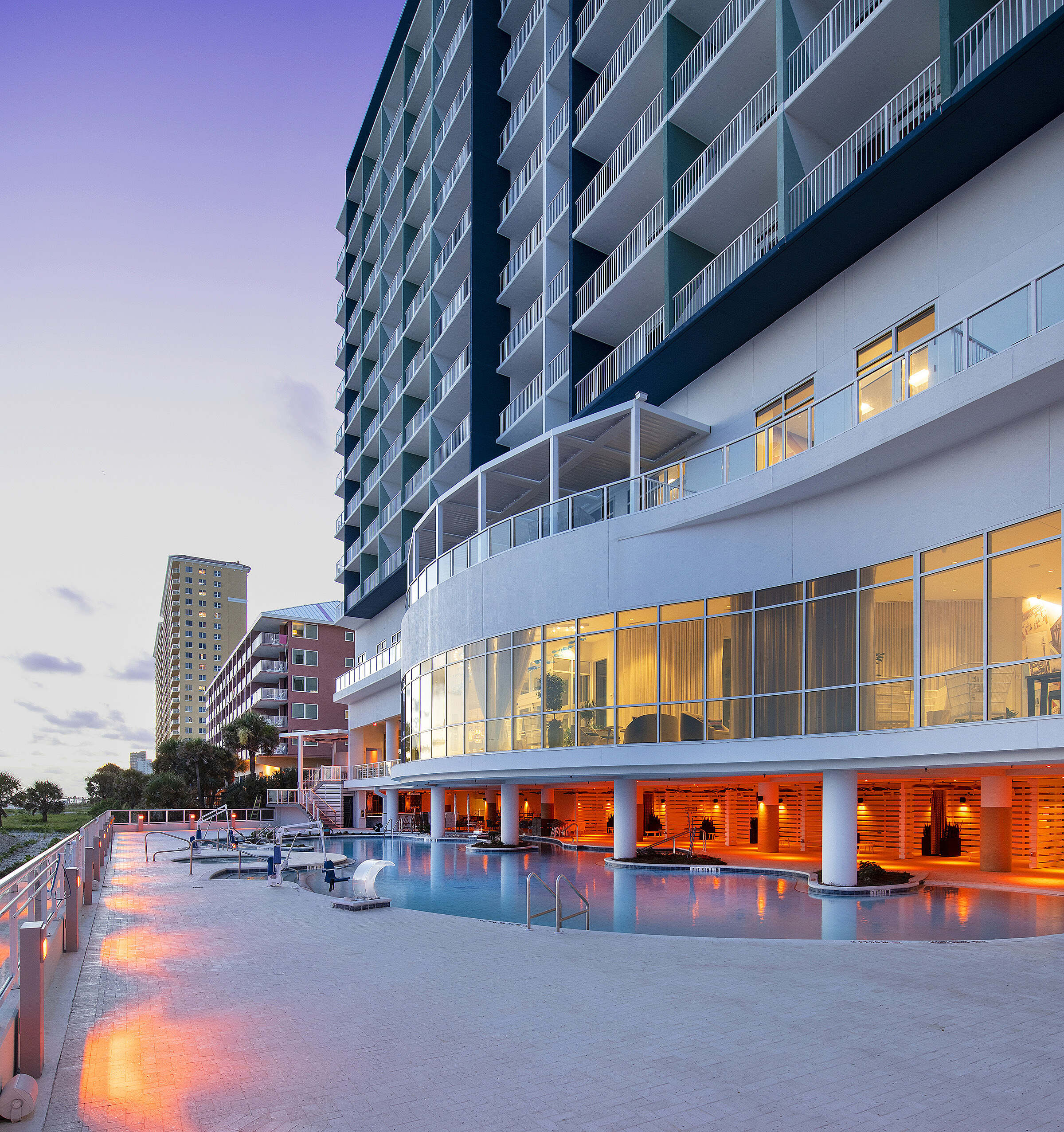 This resort is dedicated to ensuring a comprehensive guest experience, offering various amenities to meet diverse needs. The facilities include meeting rooms for business travelers, a well-equipped fitness center for health enthusiasts, and a full bar to unwind and enjoy moments of relaxation. The guest rooms, adorned with standard amenities, also present the option of suites and bunk beds, catering to families with younger children. Outdoors, the expansive pool area becomes a focal point, featuring a lazy river that adds a leisurely touch to aquatic enjoyment. The highlight is the spacious grotto, complete with cabanas and TVs, creating an inviting space where guests can indulge in both relaxation and entertainment against the backdrop of the beachfront ambiance.