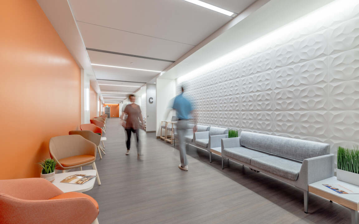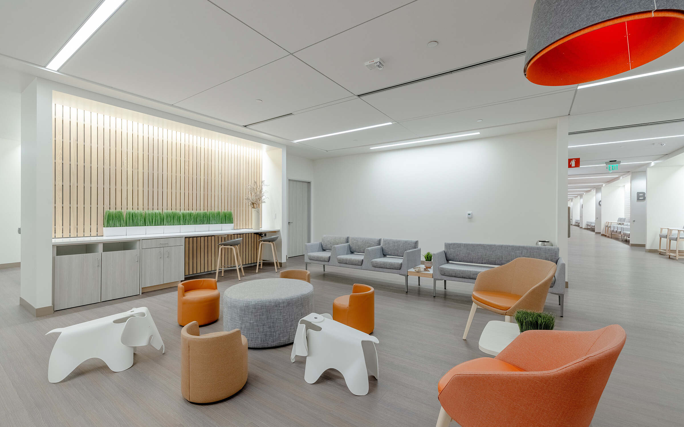 Patient experience was a central focus throughout the project, guiding both the overall building design and the interior build-out. Clear and intuitive wayfinding was prioritized to help ease the stress commonly associated with healthcare visits. The interior spaces reflect a balance of comfort and modern aesthetics, aligned with the Dignity Health brand and its mission of promoting human kindness in care.