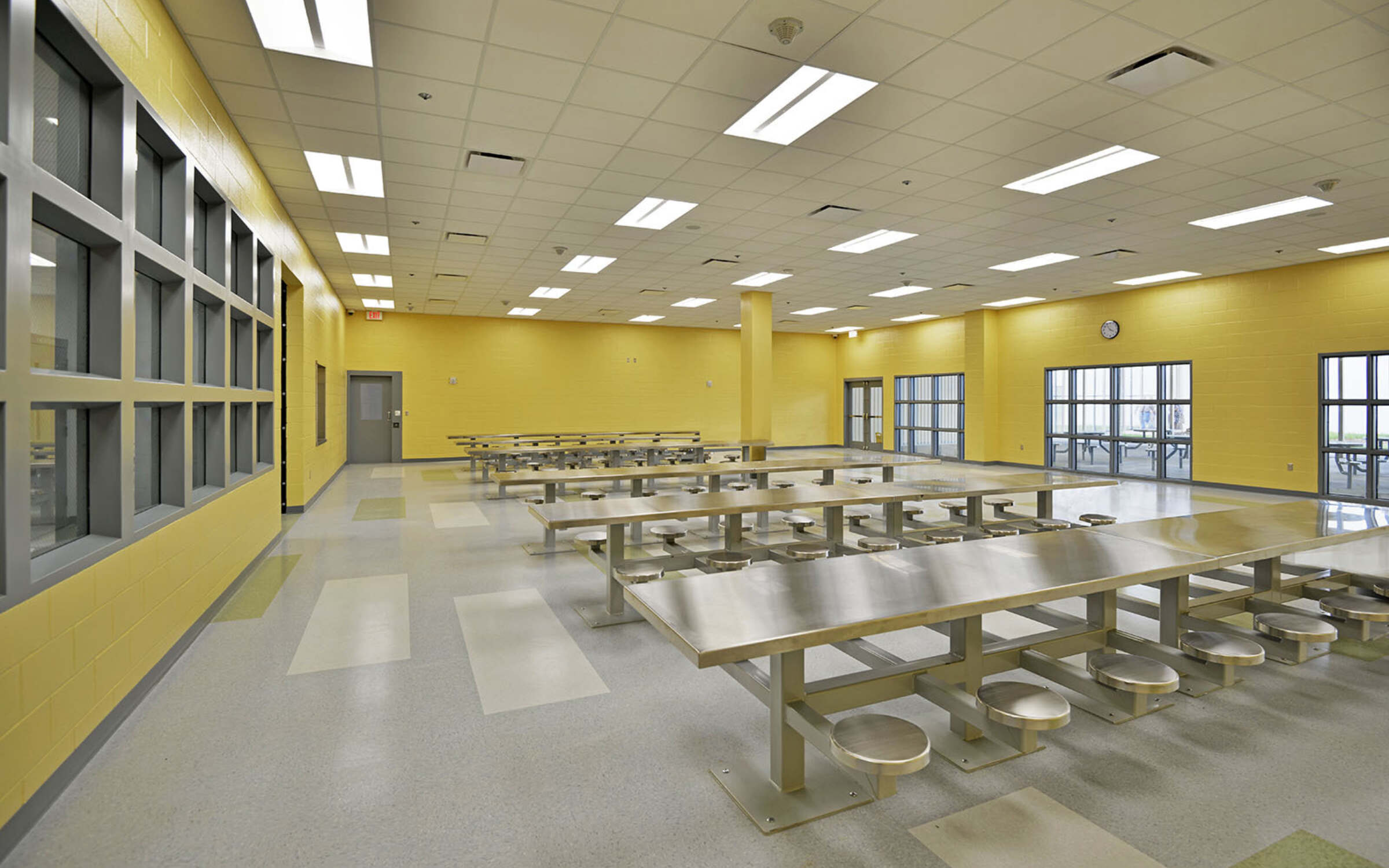 Separate from the housing areas, the campus offers administrative offices, public visitation spaces, medical and laundry facilities, and a kitchen and cafeteria designed to accommodate the detainees’ various dietary needs.