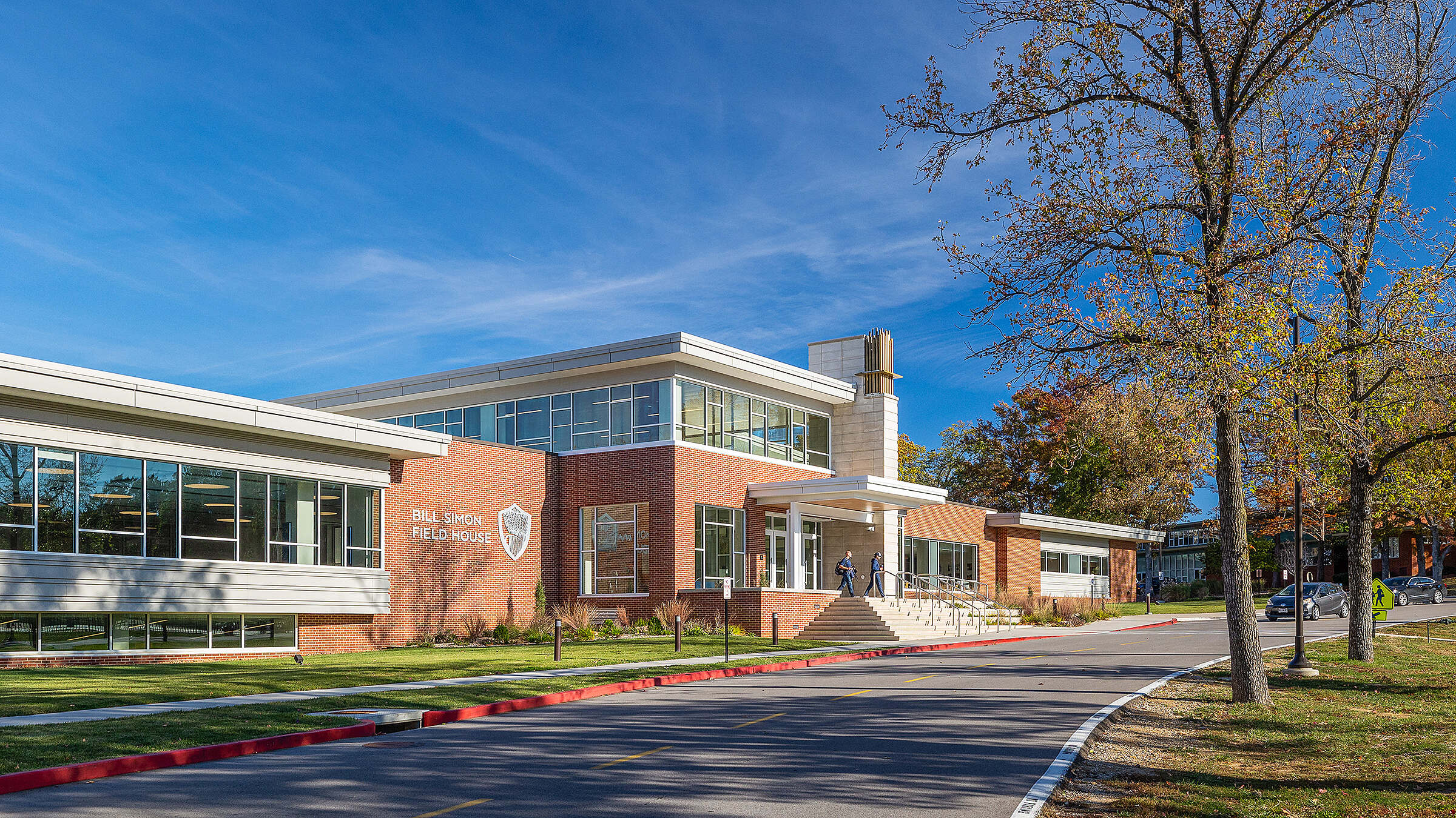 The Principia School's new Bill Simon Field House is a transformative addition to campus that enhances the school’s athletic infrastructure while reinforcing its commitment to character development and team-building. Strategically located at the campus gateway, the facility resolves long-standing scheduling conflicts between athletics and physical education by providing a versatile, state-of-the-art environment for training, competition, and community engagement.