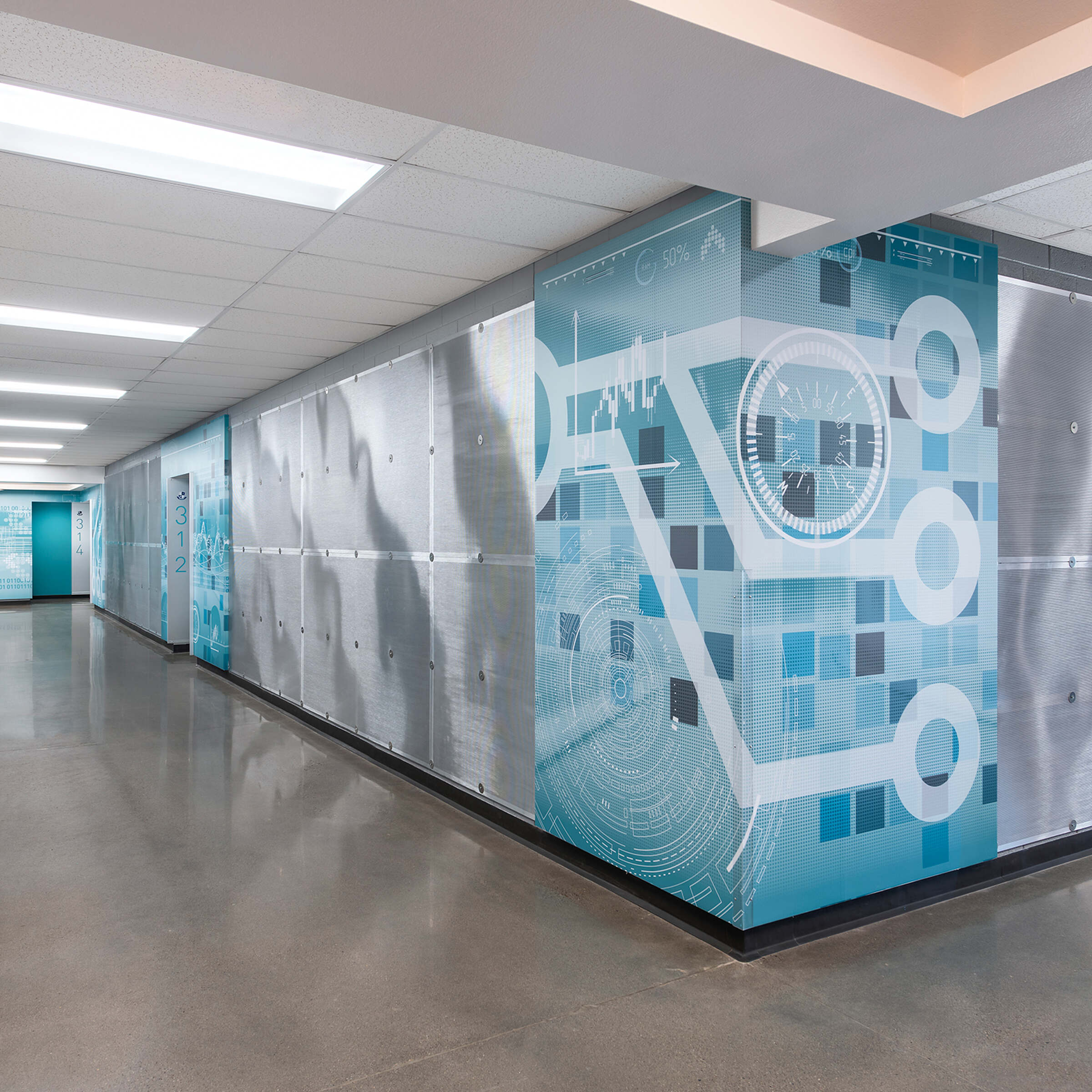 Riverside School District’s Kings Ridge Preparatory Academy set out to reimagine the traditional school environment by establishing a strong, distinct STEM identity throughout the campus. The goal was to create learning spaces that not only support the curriculum but also visually reflect the school’s commitment to science, technology, engineering, and math. To achieve this, each area of the school was enhanced with bold, thematic graphics that represent the four STEM disciplines, giving students a sense of place and purpose as they move through the building.