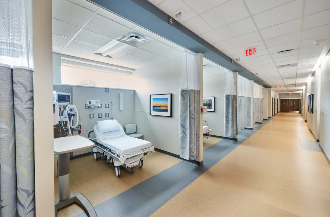 The Ambulatory Surgical Center consists of four operating rooms, two procedure rooms, one minor procedure room, 20 preoperative and postoperative patient bays, and four post-anesthesia care unit bays.