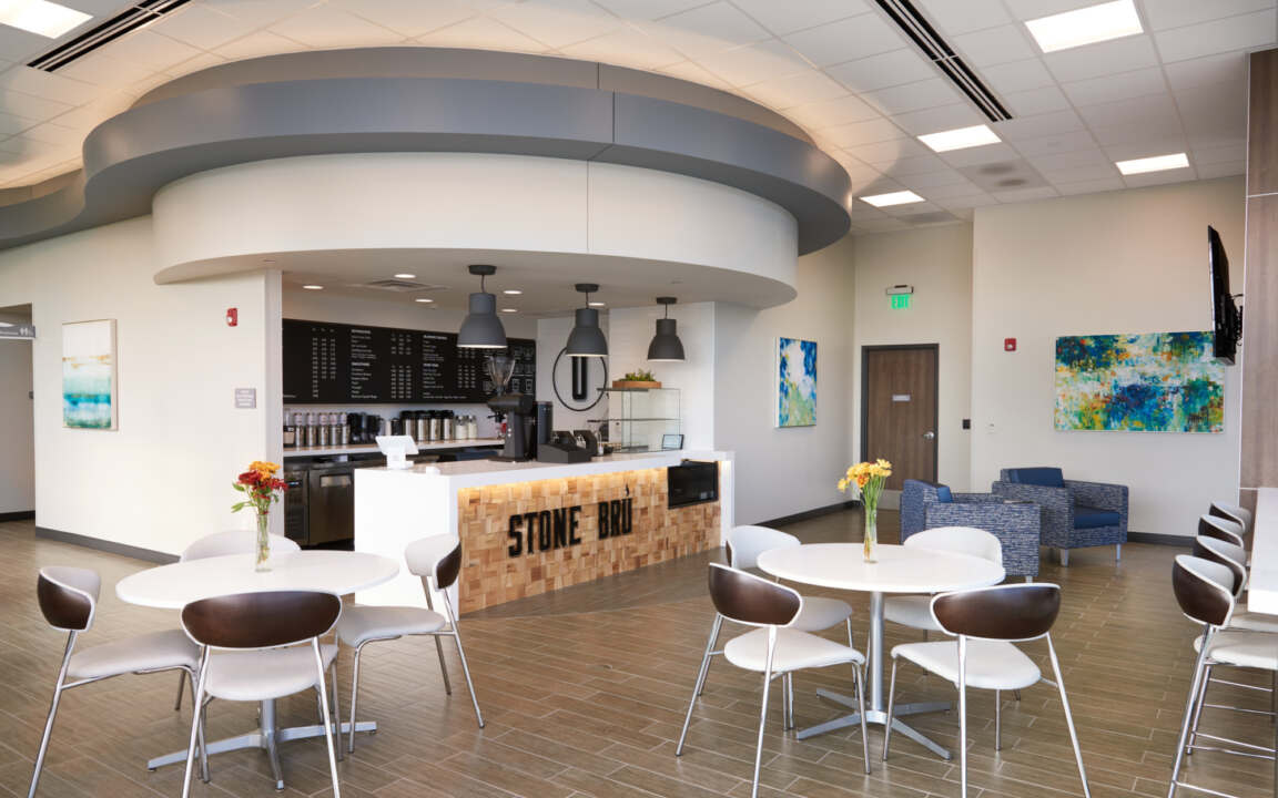 Grace Hebert Curtis soften the interior by including commercial dining; comfortable, inviting finishes and furnishings; and ample natural light introduced via expansive glazing and clerestory windows throughout.