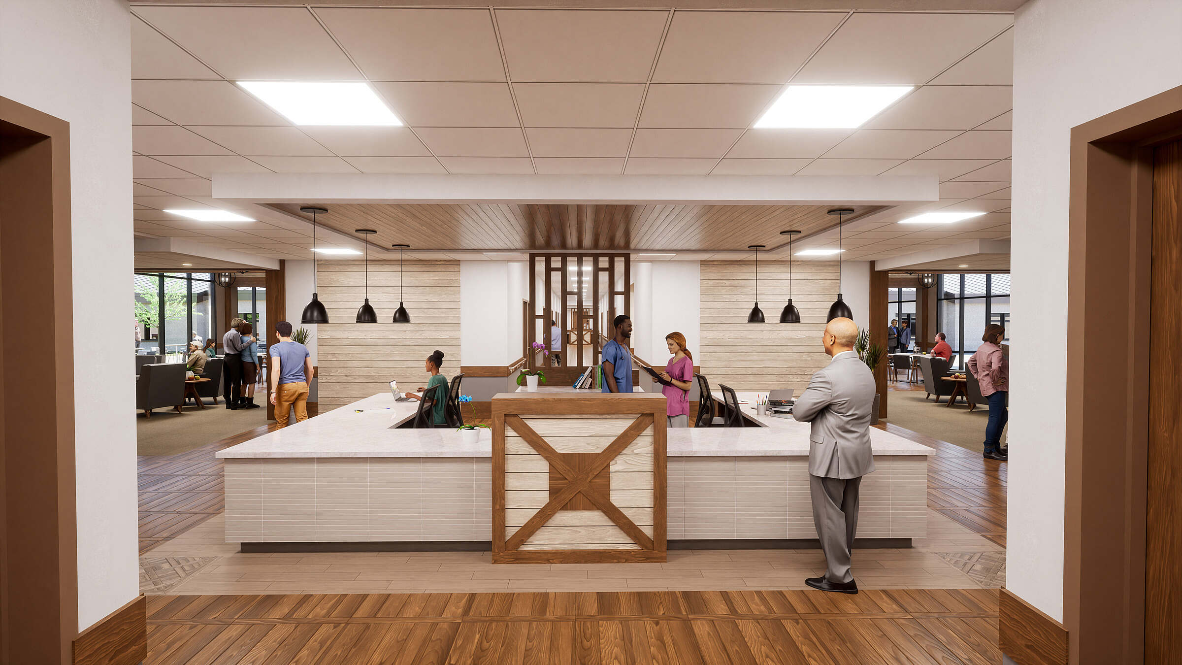 The design for this State Veterans Home builds on insights gained from a Post-Occupancy Evaluation of the original Radcliff Veterans Home, completed by this team in 2017. Incorporating 74 design enhancements and efficiencies, the updated facility includes a 60-bed skilled nursing unit organized into two 30-bed neighborhoods. Each neighborhood is divided into two 15-bed households, each with its own dining room, living room, and quiet den while sharing a kitchen/servery with the adjacent household.