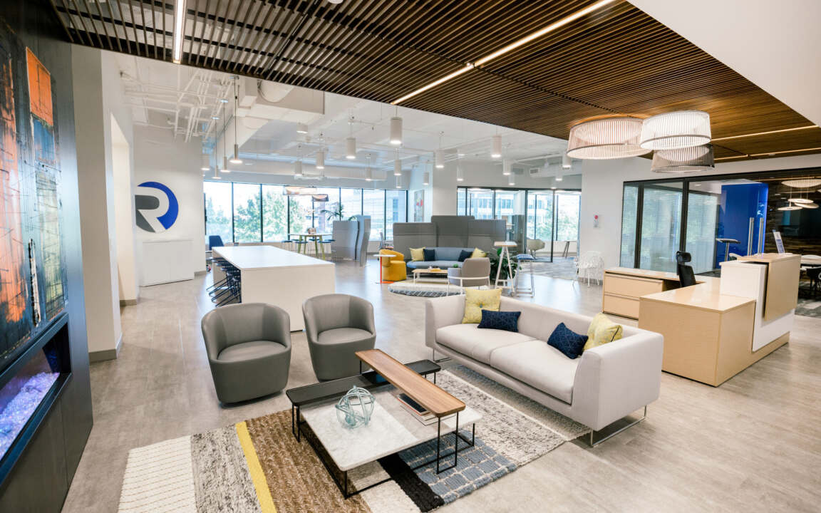 A mother’s lactation room was incorporated, providing a quiet space separate from other large, inviting gathering spaces within this working showroom. Because the office was a 4th generation space, reusing items like plumbing and corridor doors provided cost-saving measures. Removing the acoustical ceiling tile and exposing the deck were design strategies. High quality acoustics within the space was achieved through wall-applied acoustical panels and acoustical lighting fixtures.