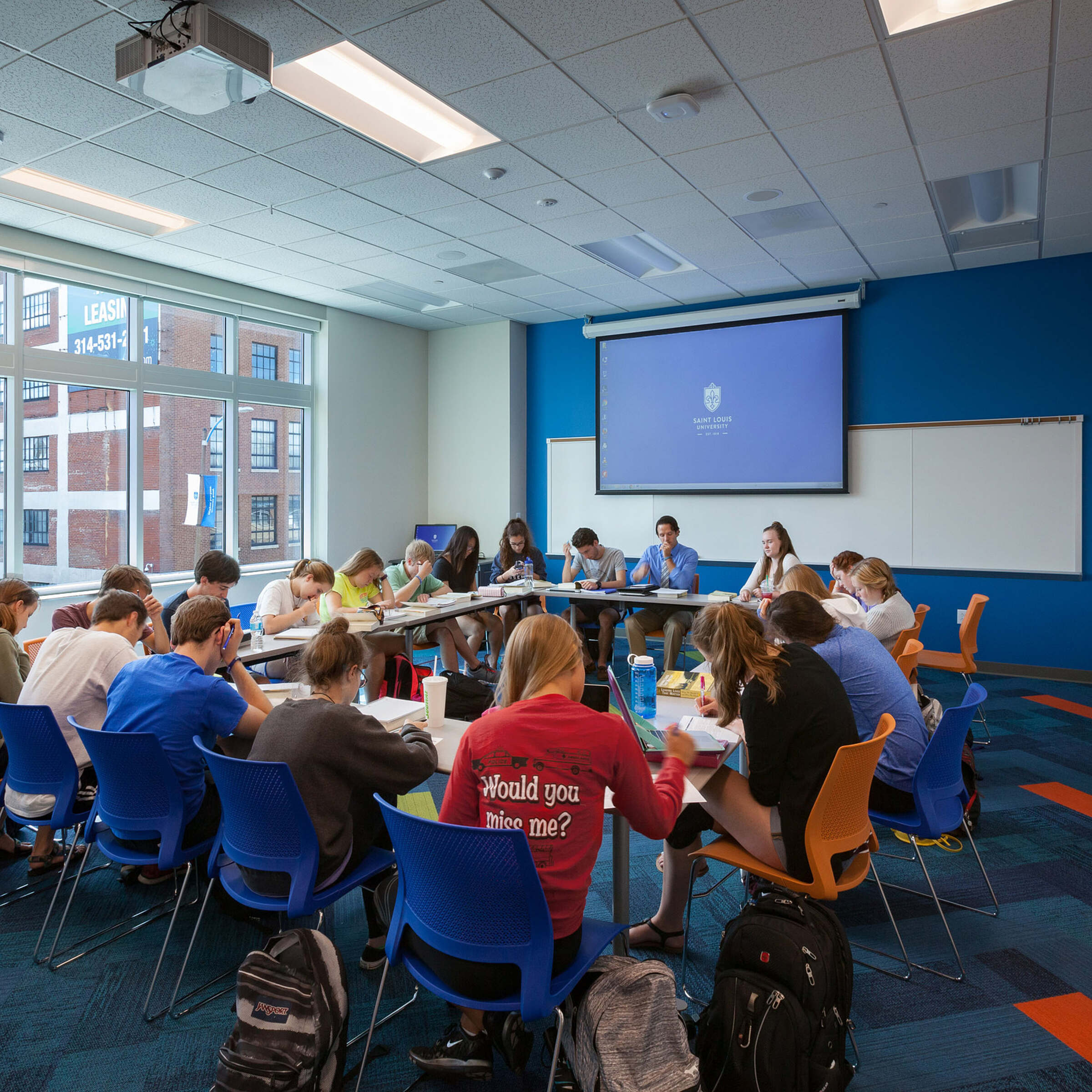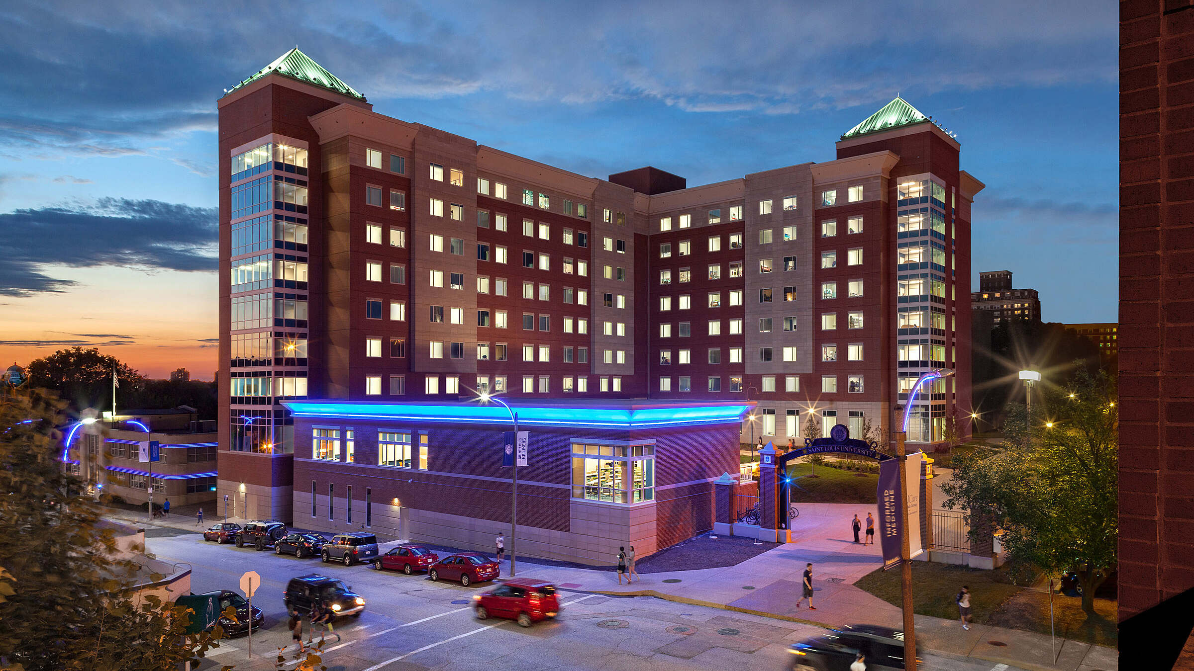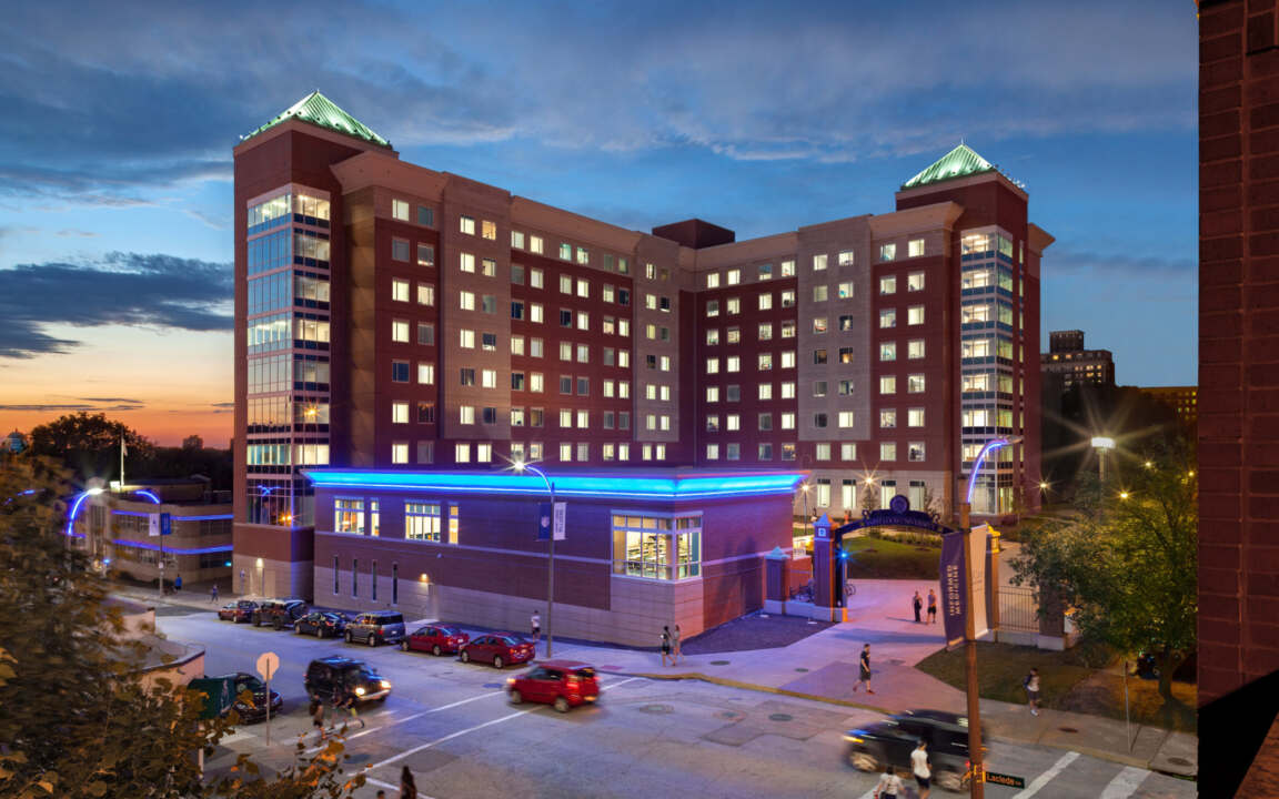Saint Louis University engaged us to design two new student housing facilities – the 454-bed Spring Hall and the 528-bed Grand Hall. Spring Hall is designed for first- and second-year students, and houses two Learning Communities - the Leadership for Social Change Community and the Honors Learning Community.