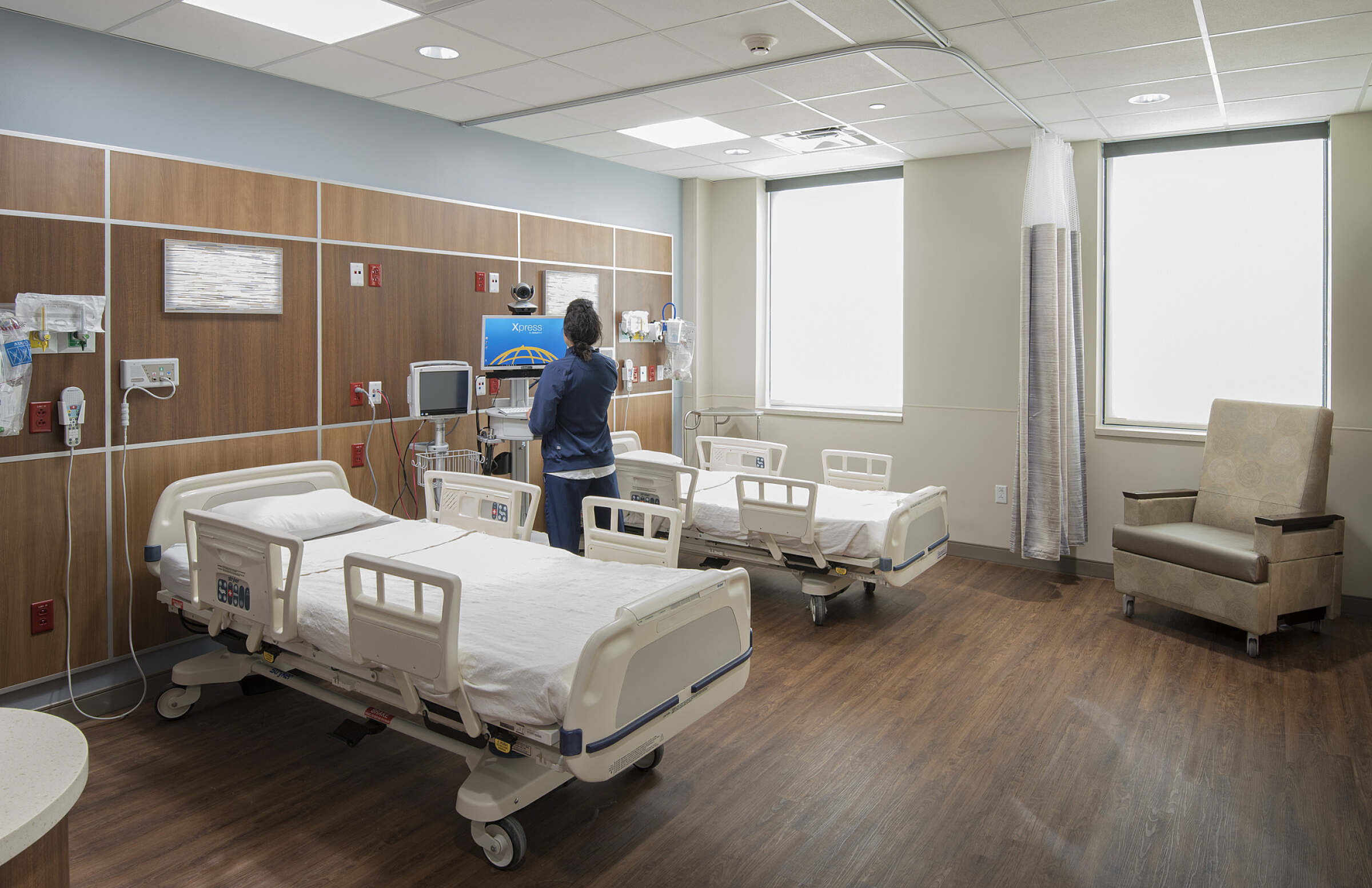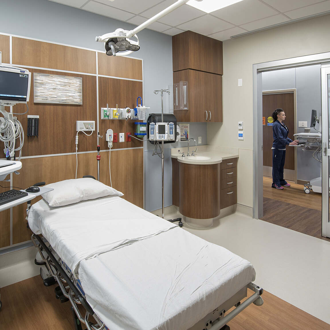 To improve operations and care, each hospital’s footprint is arranged for efficient staff and patient flow. With warm, earth-tone finishes and an abundance of natural light, the overall aesthetic creates a calm and healing atmosphere within a crisp, clean environment.