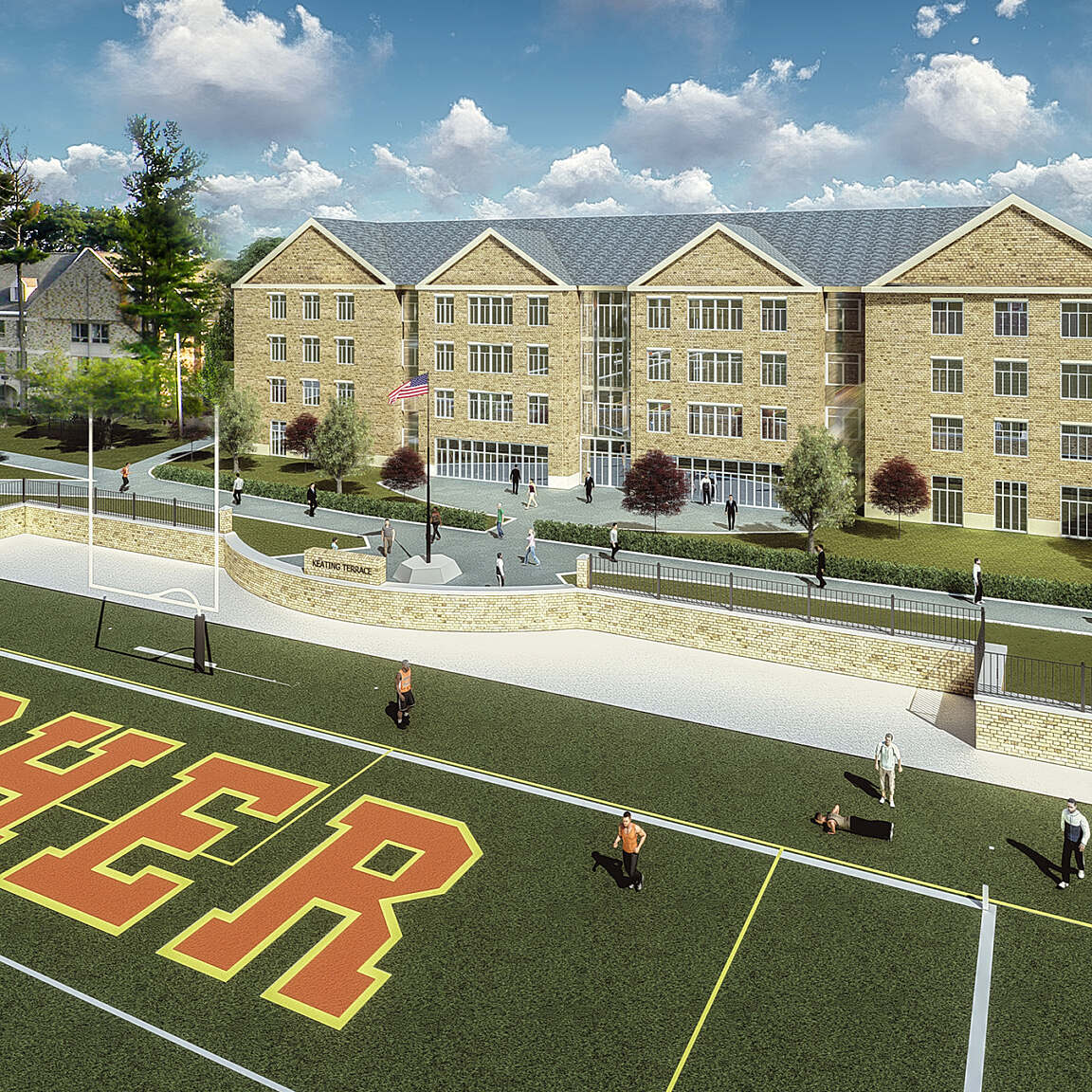 St. John Fisher College had experienced significant growth across the board—in student enrollment, expanded academic program offerings, and athletics. In response to this growth, the College identified several key priorities that would guide the development of a new Campus Master Plan. These included reevaluating a planned library renovation, increasing housing capacity, creating additional academic space, and expanding indoor athletic facilities. The overarching goal was to align future campus improvements with current space utilization needs and coordinate those efforts with the institution’s new 2018–2023 Strategic Plan.