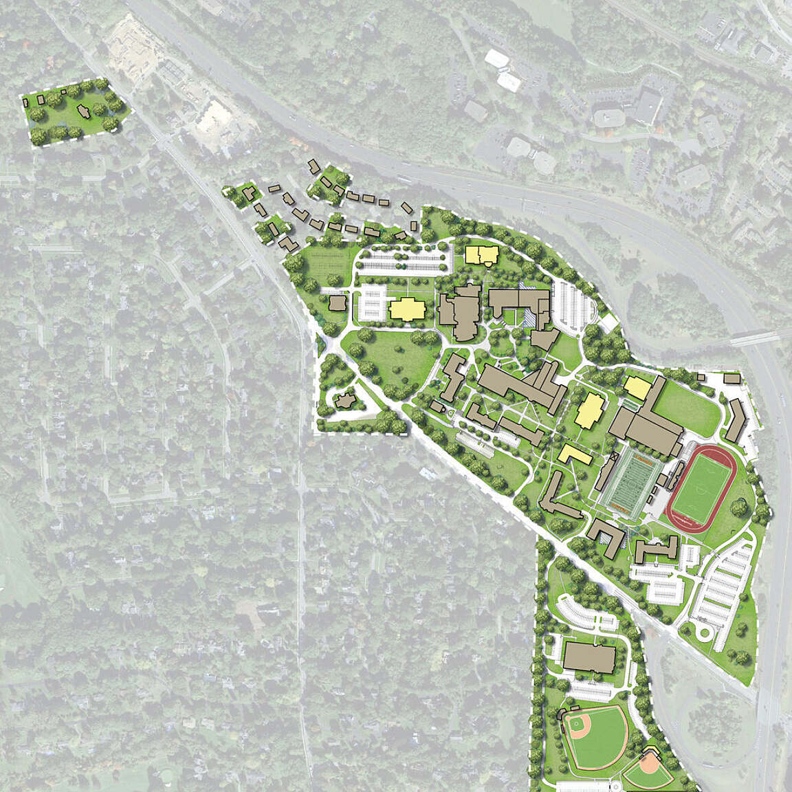 The scope of the Campus Master Plan focused on several key components: determining existing space use needs, repurposing underutilized areas, identifying capital improvement projects, aligning development priorities with the Strategic Plan, gaining implementation support, and establishing a strong foundation for future fundraising efforts. To develop a comprehensive and actionable plan, our team reviewed extensive background data and facilitated a series of on-campus workshops and collaborative meetings with College leadership. These sessions, held between multiple on-site visits, were instrumental in building consensus and maintaining project momentum.