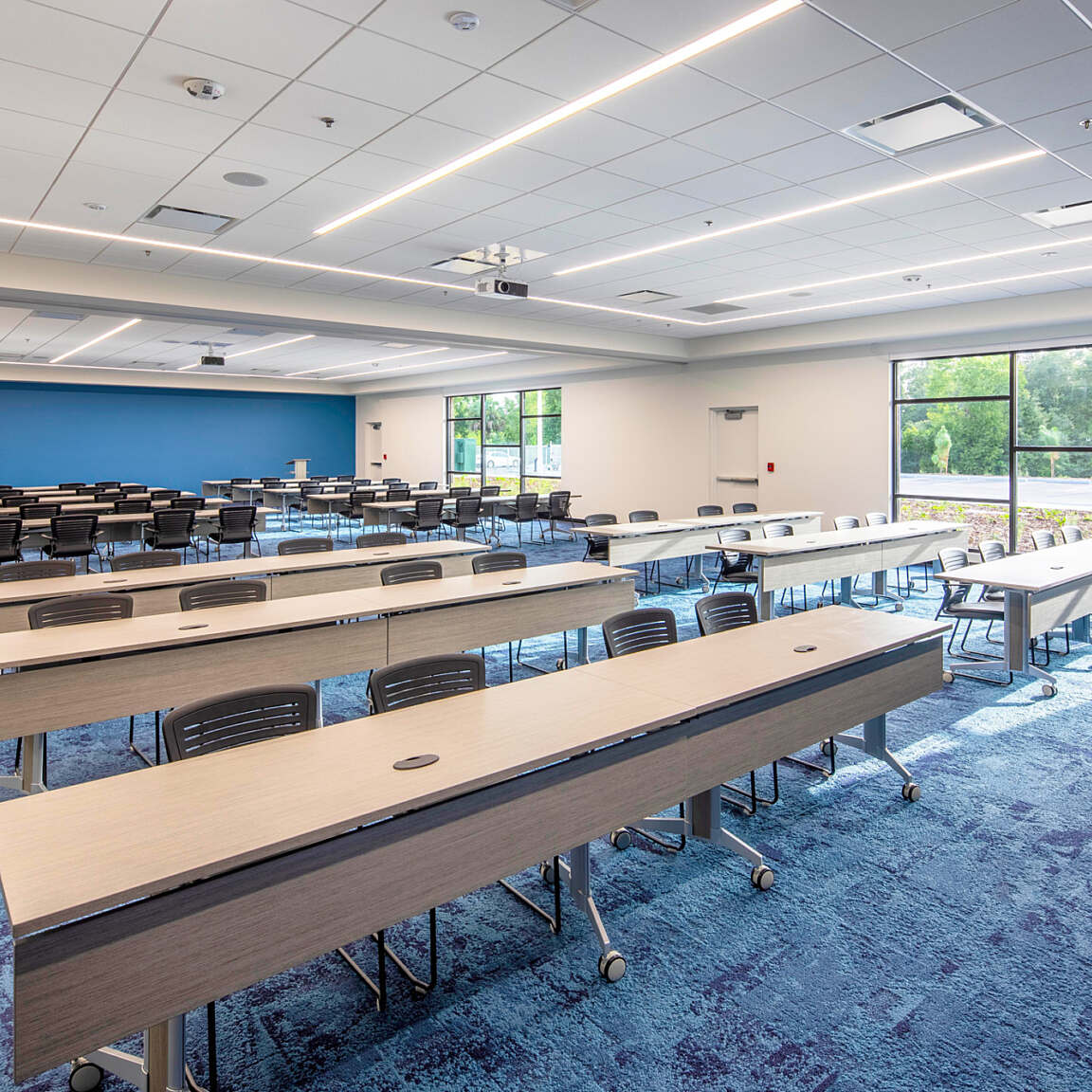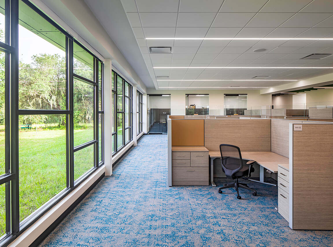 The St. Johns River Water Management District: Apopka Service Center is a thoughtfully designed facility that includes executive offices, meeting rooms, flex offices, open workstation areas, and spacious conference and collaboration spaces. The layout supports both individual work and team-based interaction, creating a dynamic environment tailored to the District’s operational needs. The building is strategically organized to promote efficiency, adaptability, and comfort while meeting the demands of a growing public service organization.