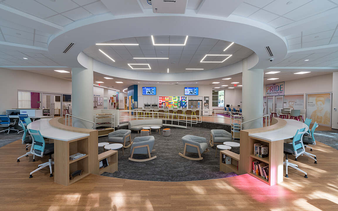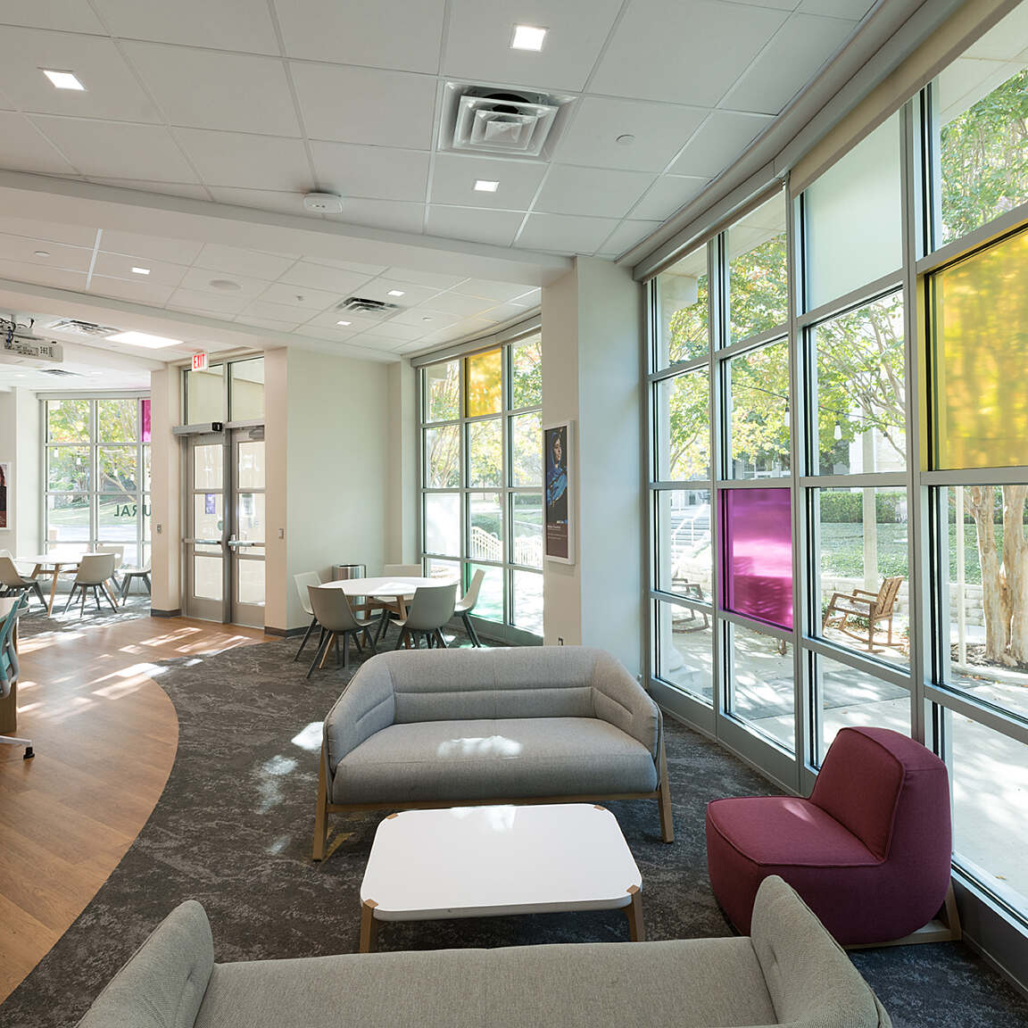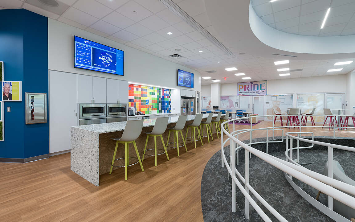TCU’s goal to foster diversity, inclusiveness, and cultural awareness within the community shines by recognizing and celebrating the unique experiences stemming from differences in race, ethnicity, gender, sexual orientation, age, religion, and veteran status. The renovation and re-purposing of a section of the Student Union into a distinctive branded center is committed to embracing students of diverse backgrounds. This transformative project encompasses both interior space and an outdoor event area, providing a secure setting for cultural exchange, dialogue, and educational initiatives highlighting the histories, cultures, and contributions of diverse populations. The revamped space incorporates new office facilities, conference rooms, and a lounge area, serving as a welcoming hub for students and faculty to gather and engage in meaningful interactions. This project was done in association with CannonDesign.