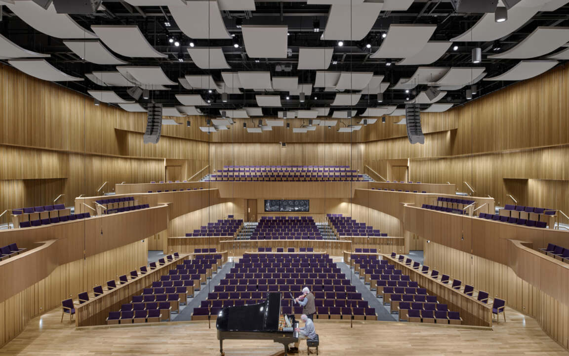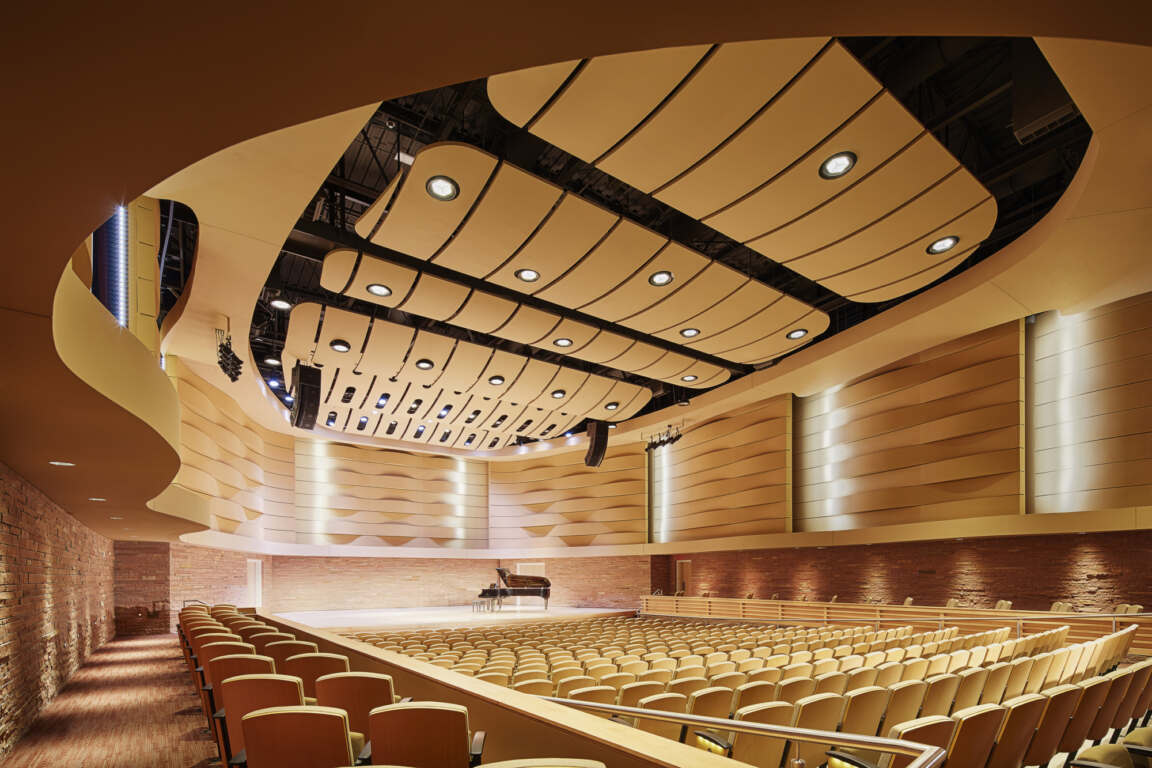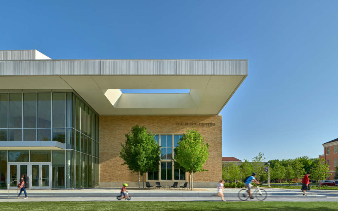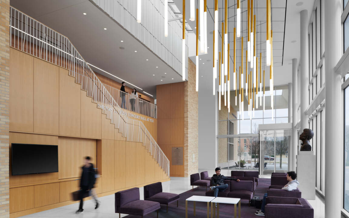 The center houses band and orchestra rehearsal spaces, as well as instructional facilities, faculty studios, and practice rooms. At the heart of the facility is the intimate and acoustically perfect Van Cliburn Concert Hall at TCU. The 700-seat state-of-the-art hall hosts outstanding musical performances enjoyed by music lovers, the TCU student body, and the entire Fort Worth community. This project was in collaboration with Bora Architects.