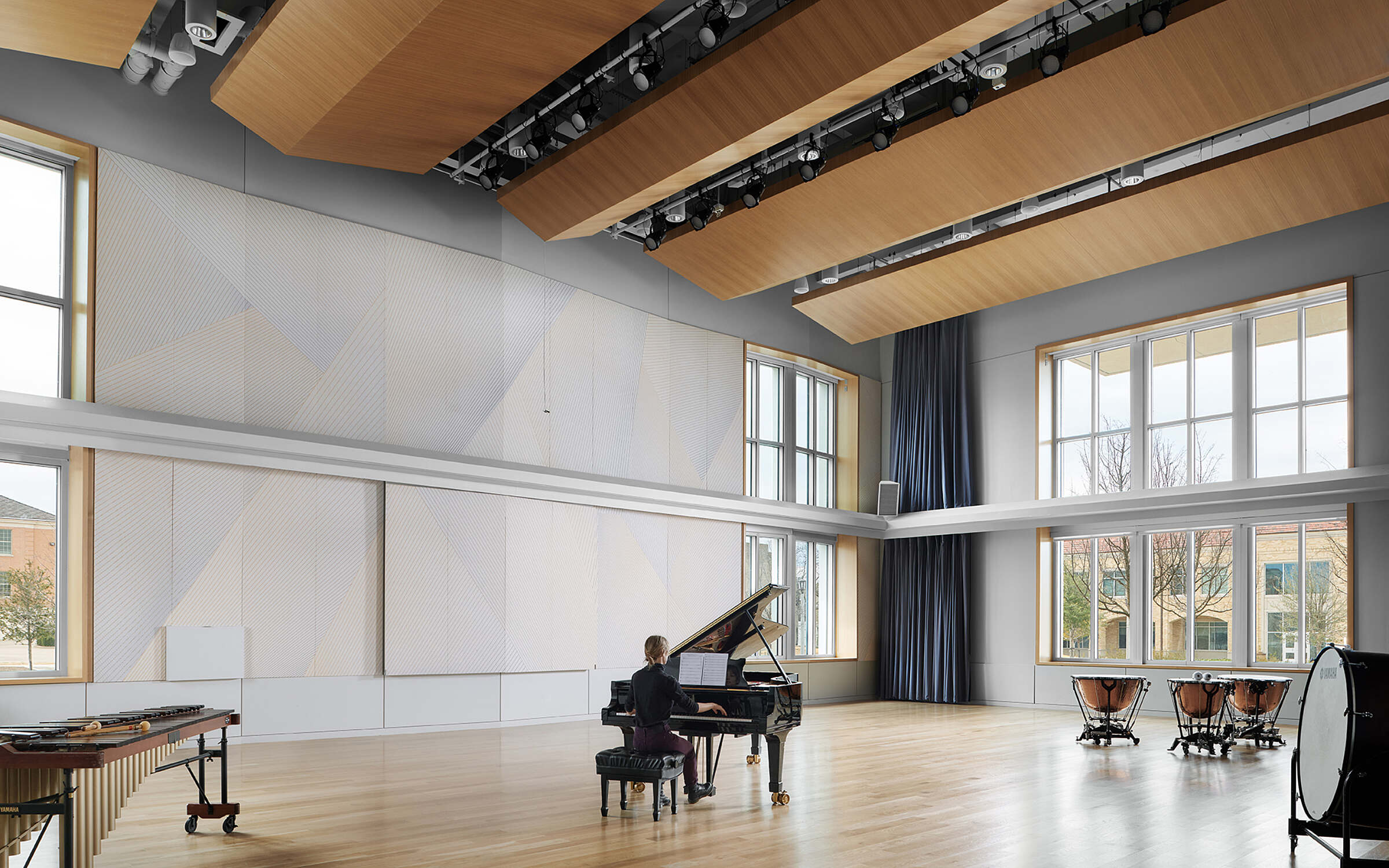 Central to the center's design is the multifaceted approach to accommodating diverse musical needs. The facility boasts expansive band and orchestra rehearsal spaces, which have been meticulously crafted to cater to the acoustic demands of large ensembles. These spaces serve as incubators for musical collaboration and learning, allowing students to hone their skills in an environment that mirrors professional settings.