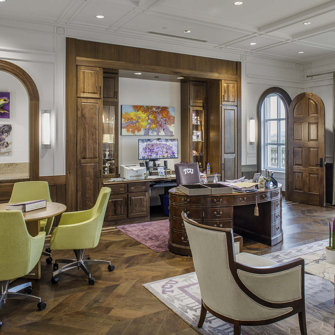 The Harrison Administration Building was tailored to meet the evolving needs of a dynamic academic environment. Central to this vision is pursuing LEED certification, a testament to TCU's dedication to sustainability and environmental stewardship. This certification reflects the University's alignment with global eco-friendly practices and sets a new standard in responsible, sustainable design within the realm of higher education.